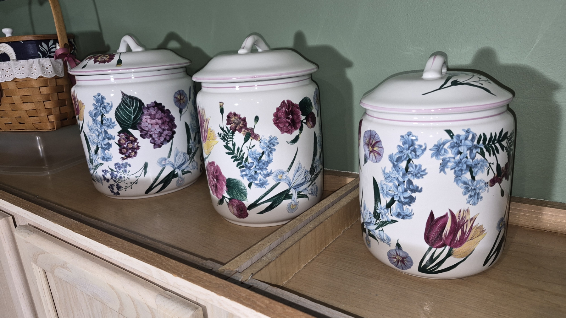 PICKUP IN NORTHFIELD - Very Colorful In Pristine Condition Canister Set As Shown - See Pics (All Items noting "Pickup In Northfield" will be available the following Saturday after this auction ends. Other items in this auction will be available at our Louisville Office. Winners of Northfield items will be notified with the address and times, after the auction closes.)