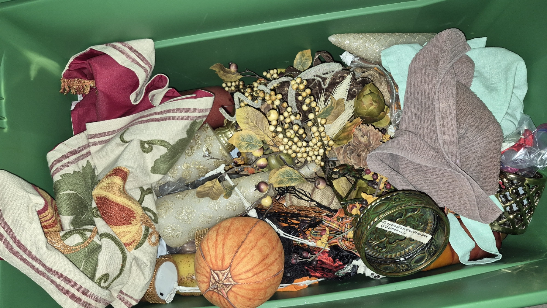 PICKUP IN NORTHFIELD - Very Large Tub / Tote Of Fall Autumn Decor As Shown - See Pics (All Items noting "Pickup In Northfield" will be available the following Saturday after this auction ends. Other items in this auction will be available at our Louisville Office. Winners of Northfield items will be notified with the address and times, after the auction closes.)