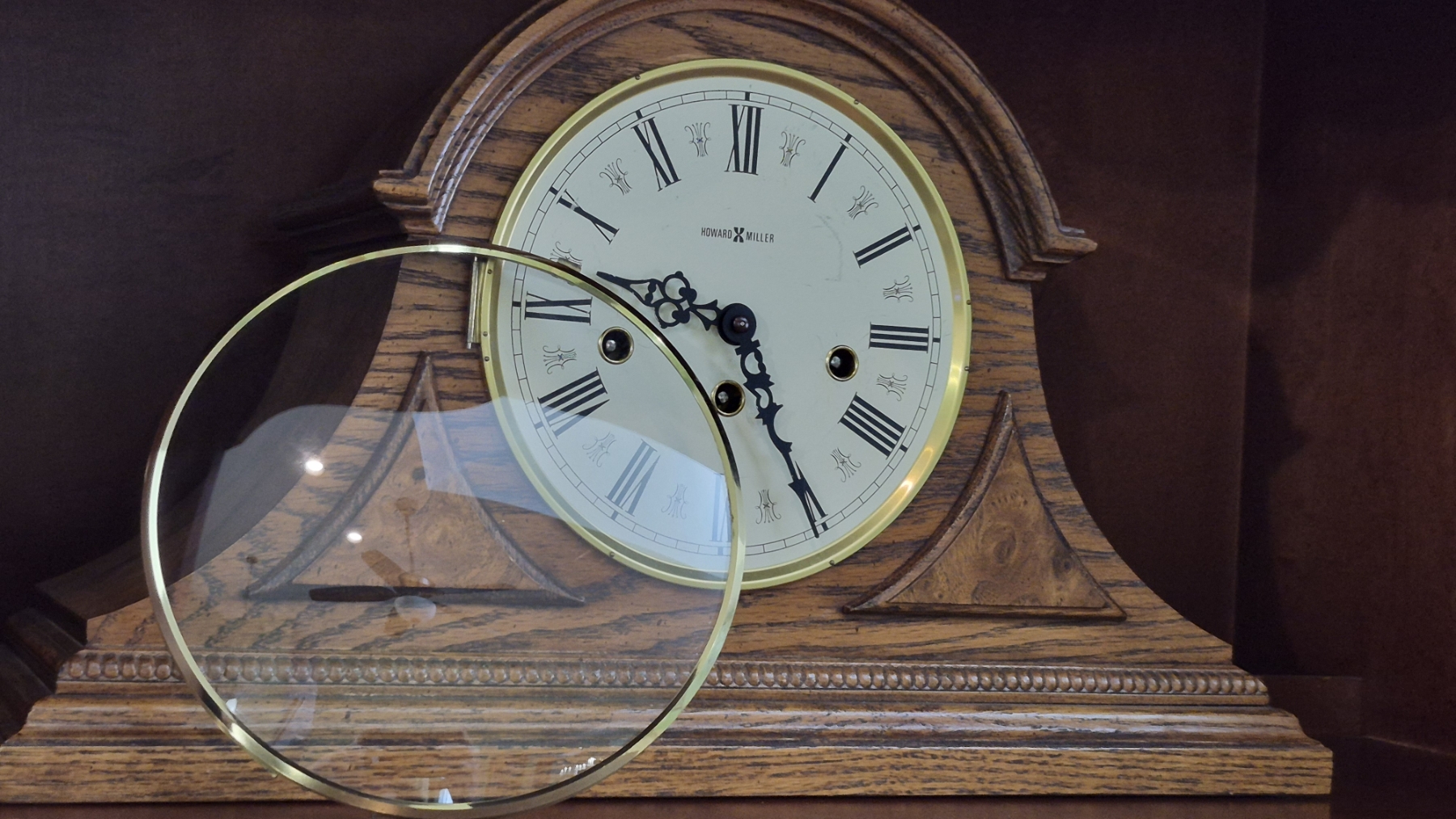 PICKUP IN NORTHFIELD - Vintage Style Shelf Clock As Shown - Glass Bezel Hinge Requires Replacement - See Pics - (All Items noting "Pickup In Northfield" will be available the following Saturday after this auction ends. Other items in this auction will be available at our Louisville Office. Winners of Northfield items will be notified with the address and times, after the auction closes.)