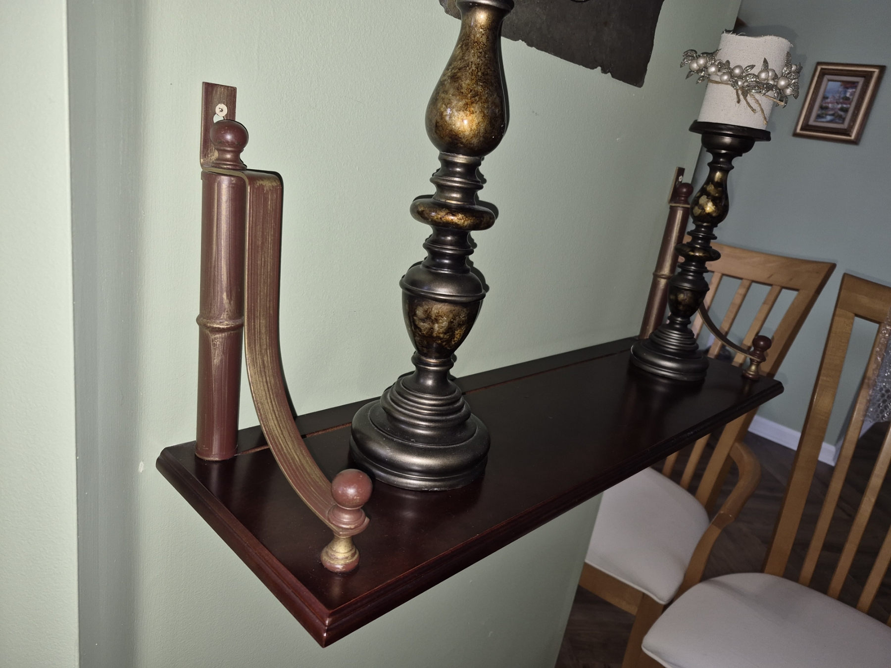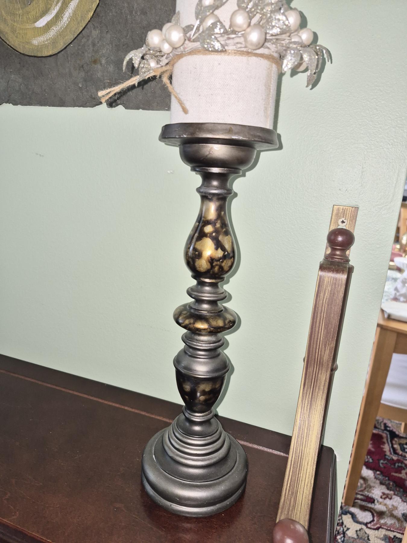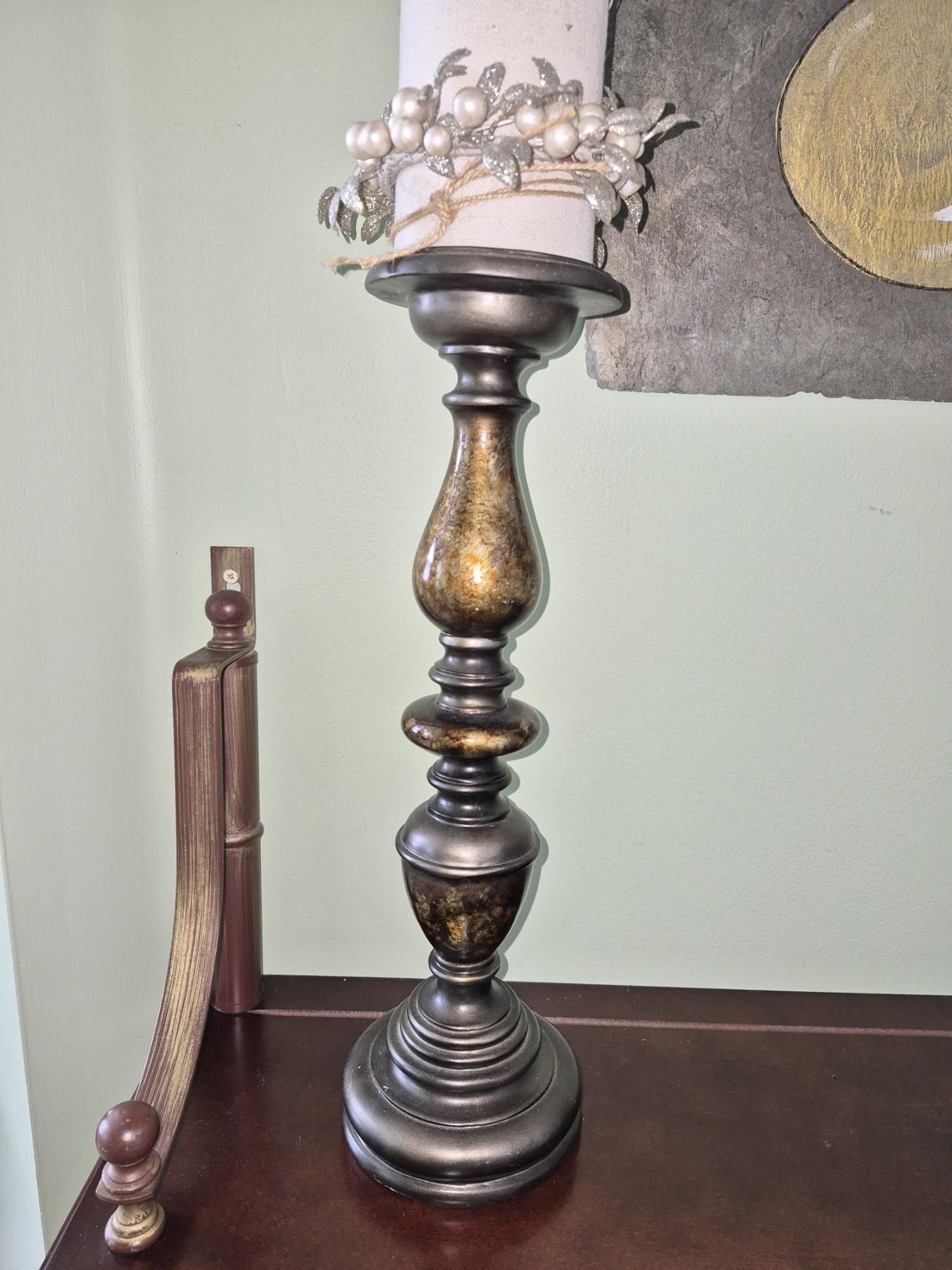 PICKUP IN NORTHFIELD - Wood Wall Rack With Pair Of Candlesticks Rack Is 30 x 19 - Candlesticks Are 15" & 12" Tall - See Pics - (All Items noting "Pickup In Northfield" will be available the following Saturday after this auction ends. Other items in this auction will be available at our Louisville Office. Winners of Northfield items will be notified with the address and times, after the auction closes.)