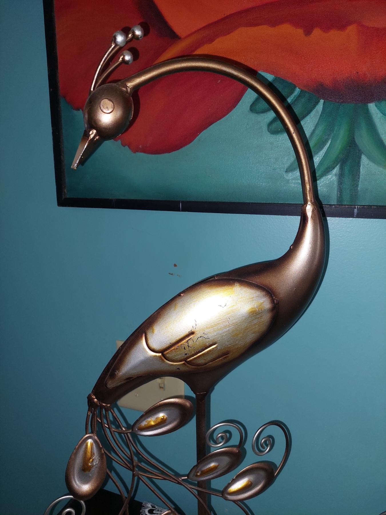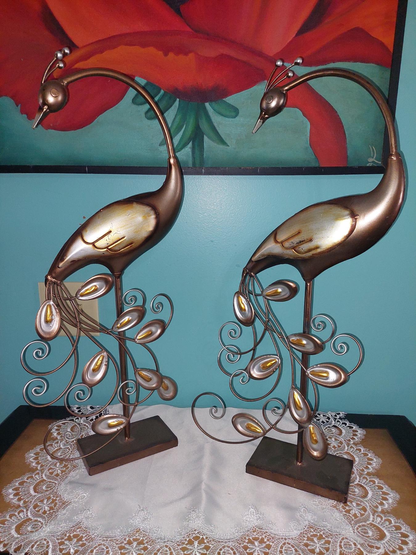 Pair Of 26" Tin Copper Toned Bird Sculptures - Exc Condition