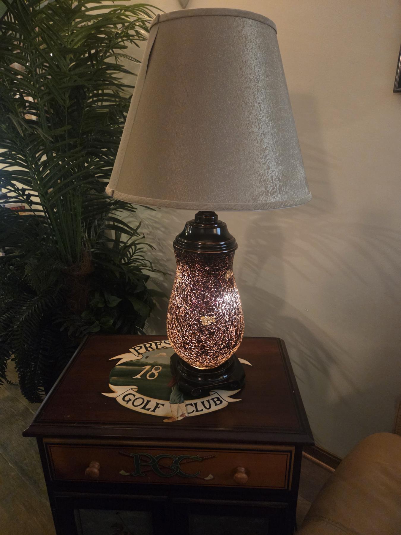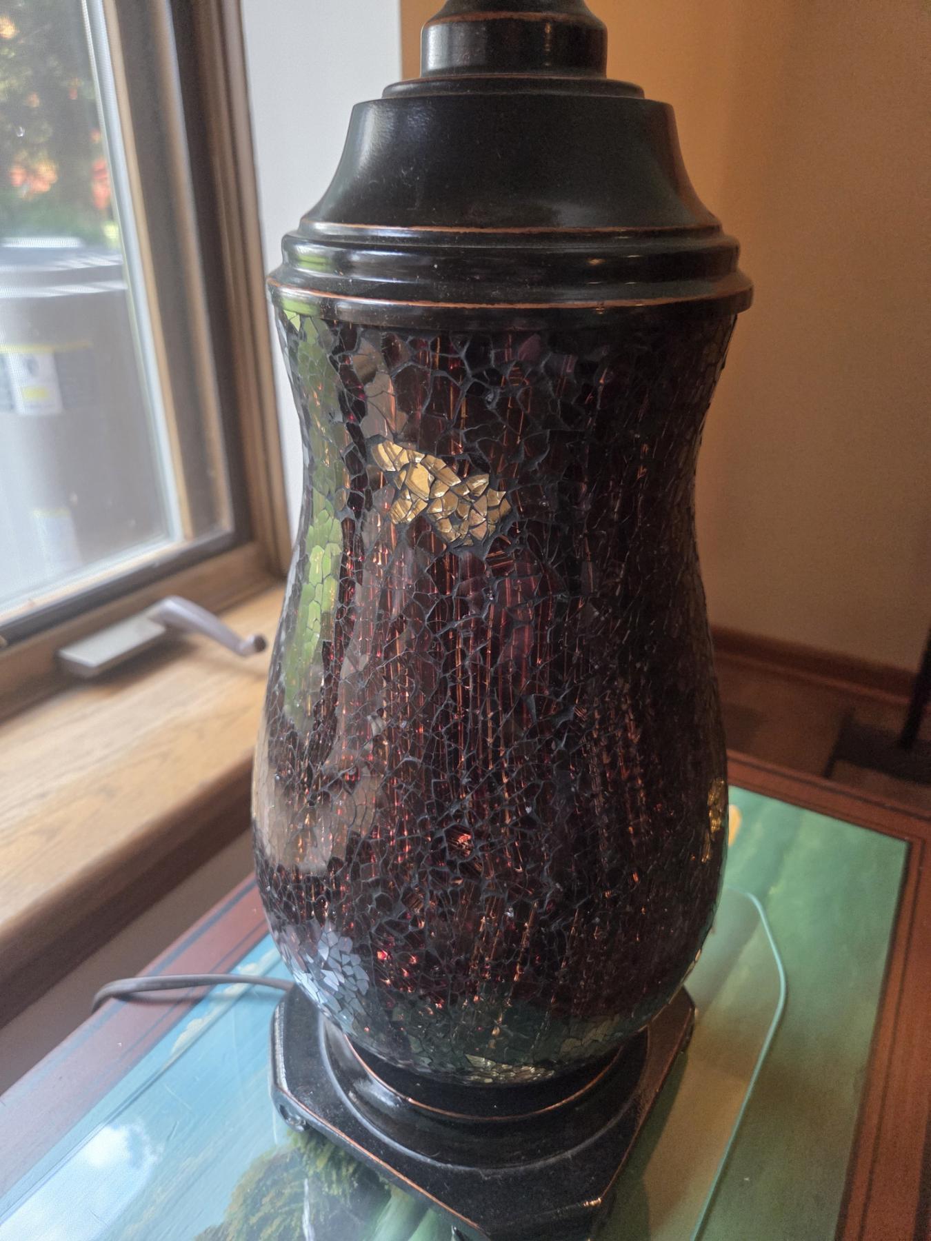 Pair Of Beautiful Mosaic Lamps Top & Bottom Light Up