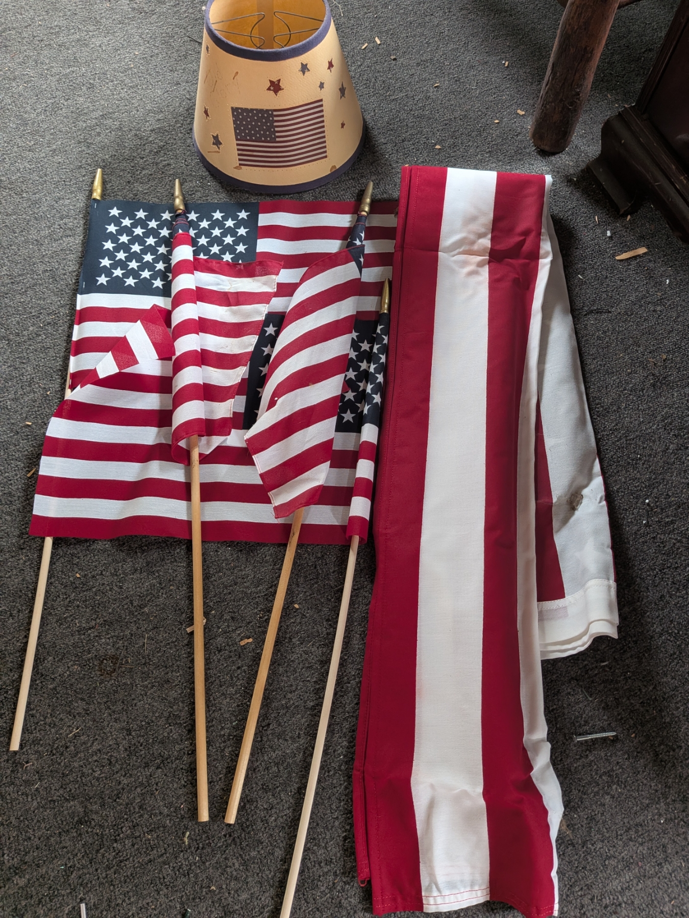 Patriotic Group New 3'x5' Flag, 4 New Smaller Flags, & Small Lamp Shade