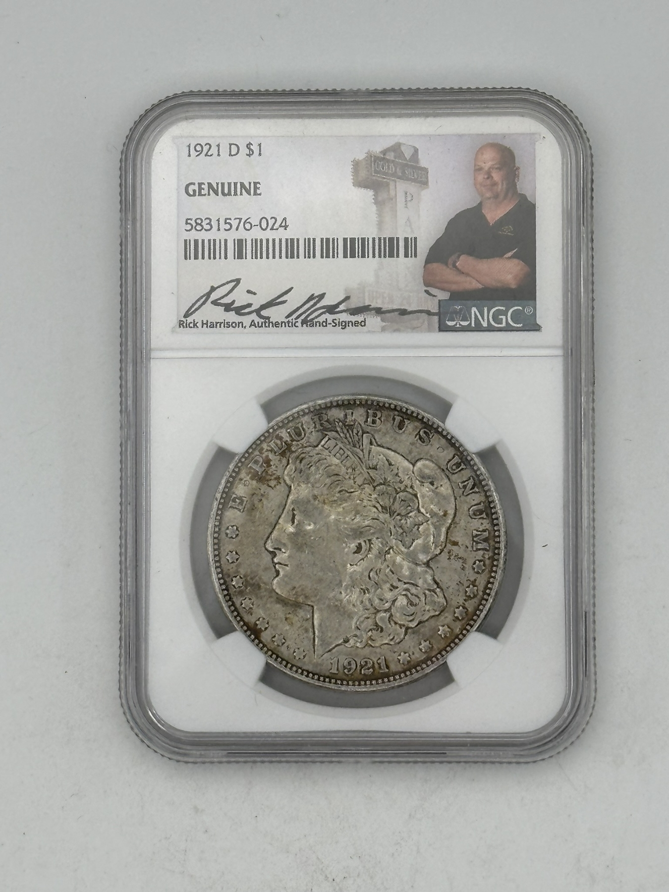 Pawn Stars Rick Harrison Signed NGC Genuine 1921-D Morgan Silver Dollar