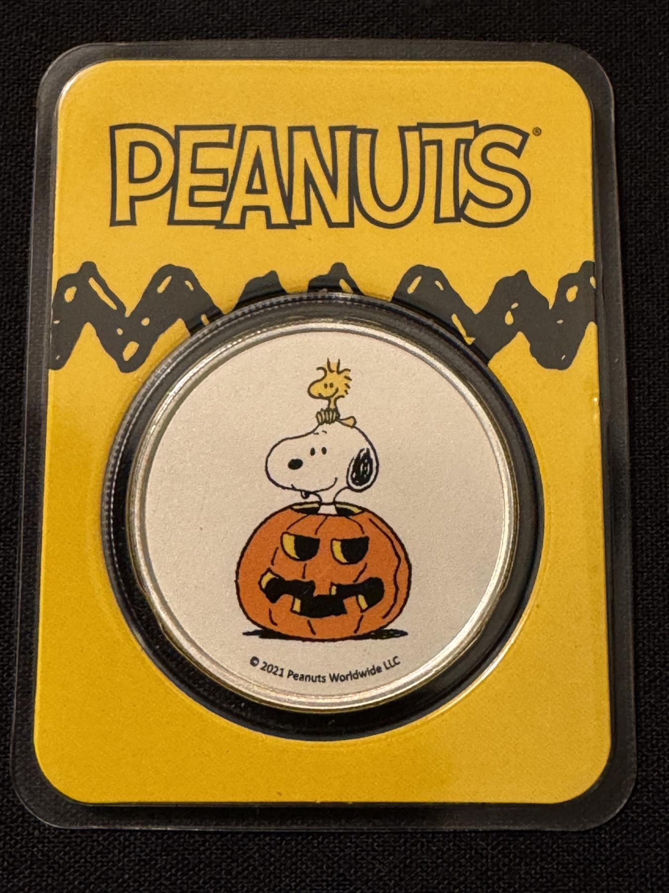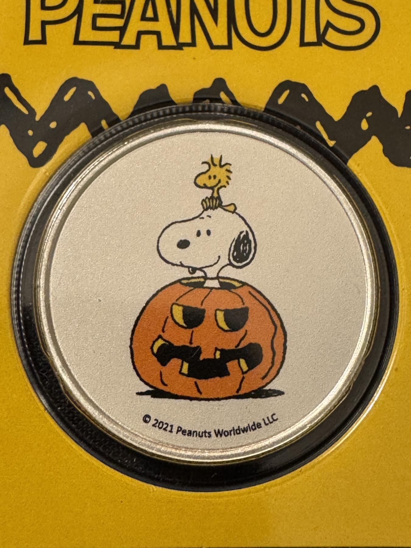 Peanuts Snoopy & Woodstock Halloween One Troy Ounce .999 Fine Silver - Mint Condition
