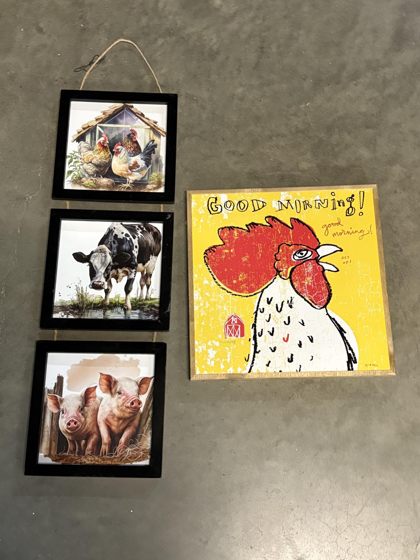 Photo Frames - 3 Tier - Chickens - Cows - Pigs & Good Morning Chicken Wall Art - 8x25" & 13x13"