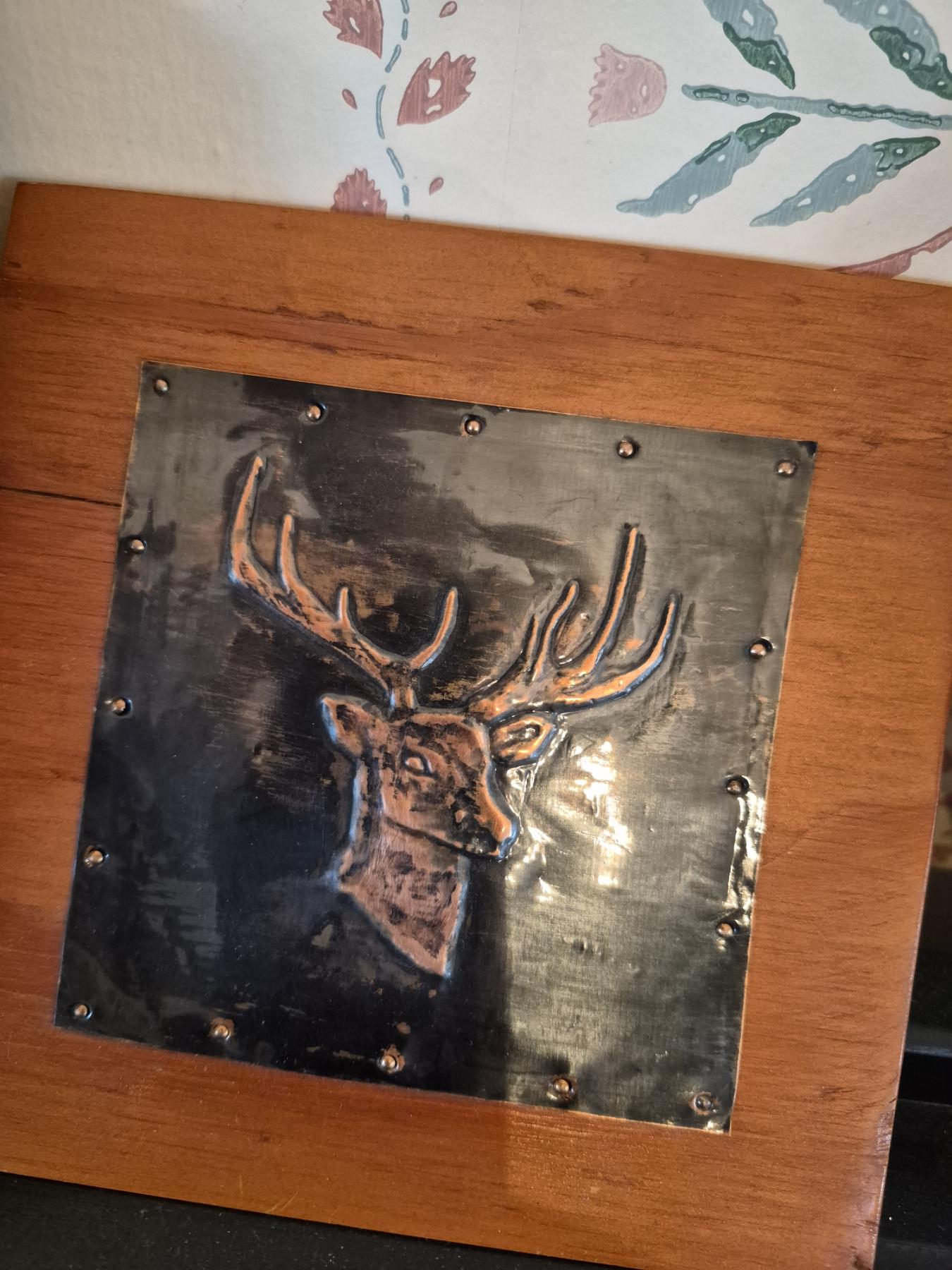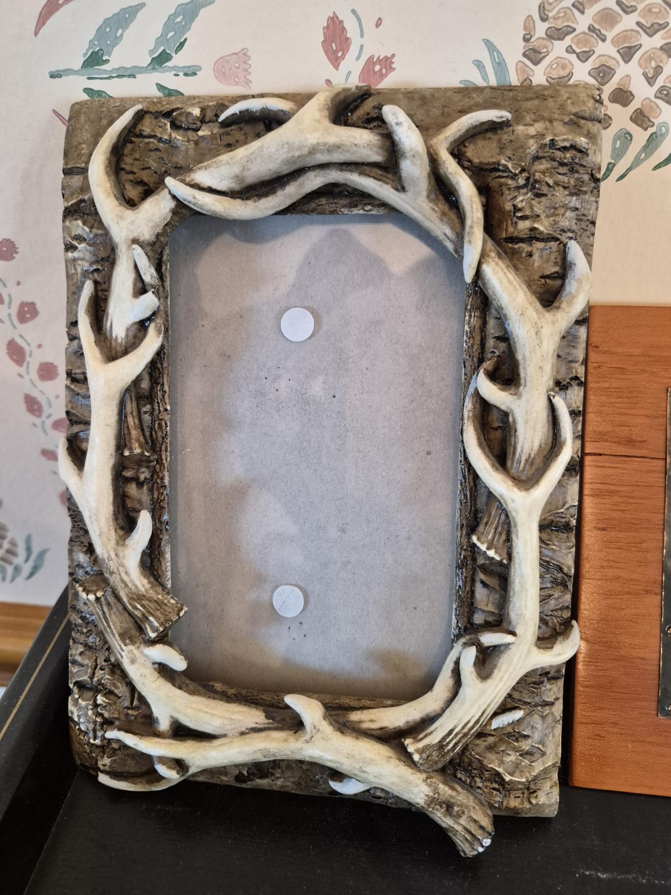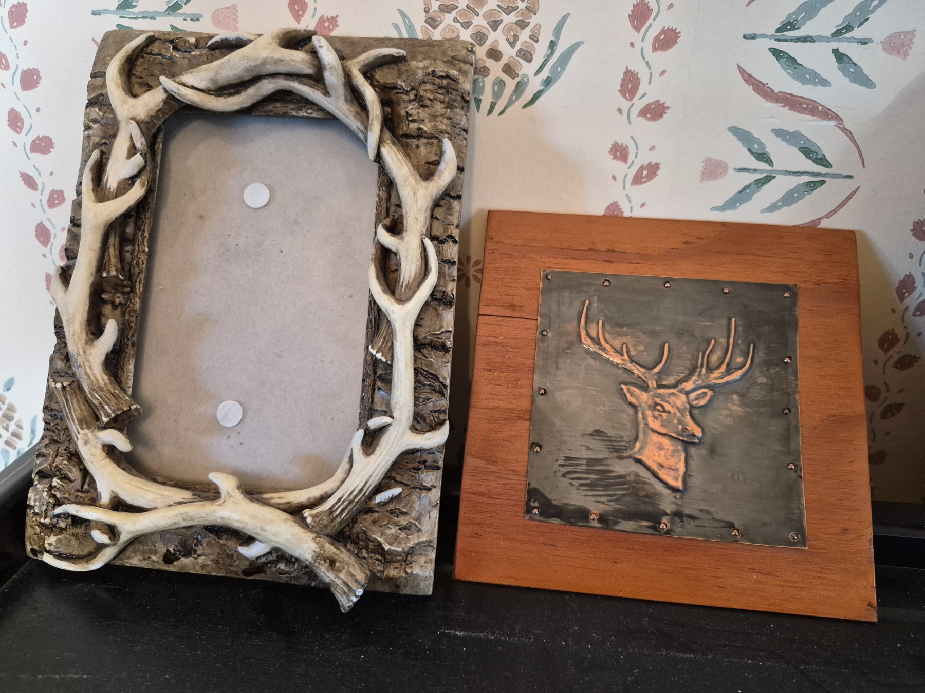 Pickup In Canton - 2 Pc Hunting Themed Group - Antler Picture Frame & Copper Plaque - Frame takes 4.5 x 6.5 Photo - Plaque is 5 x 5