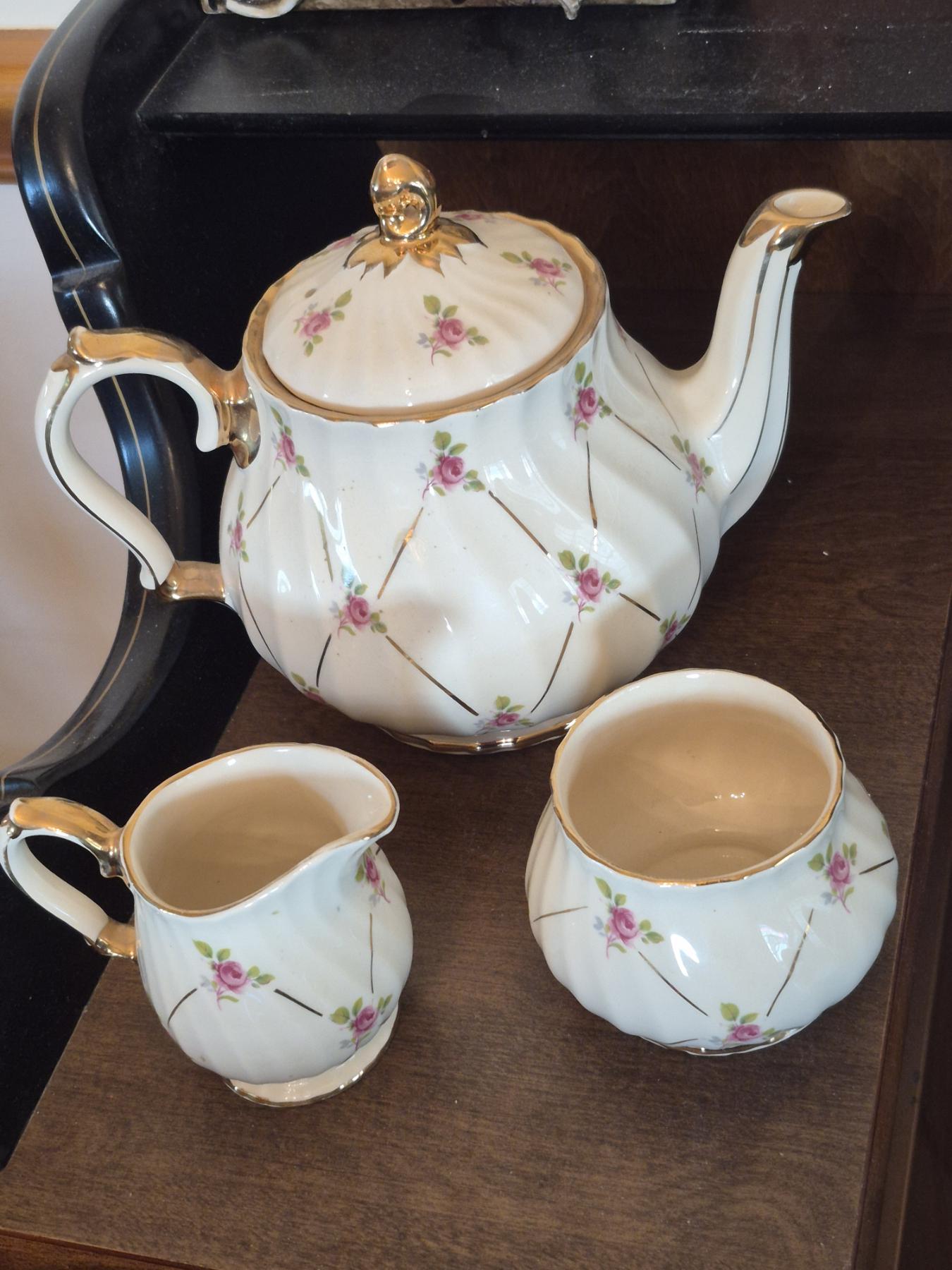 PICKUP IN CANTON - 2 Piece Vintage English Hand Painted Wash Basin & Pitcher - Mint Condition
