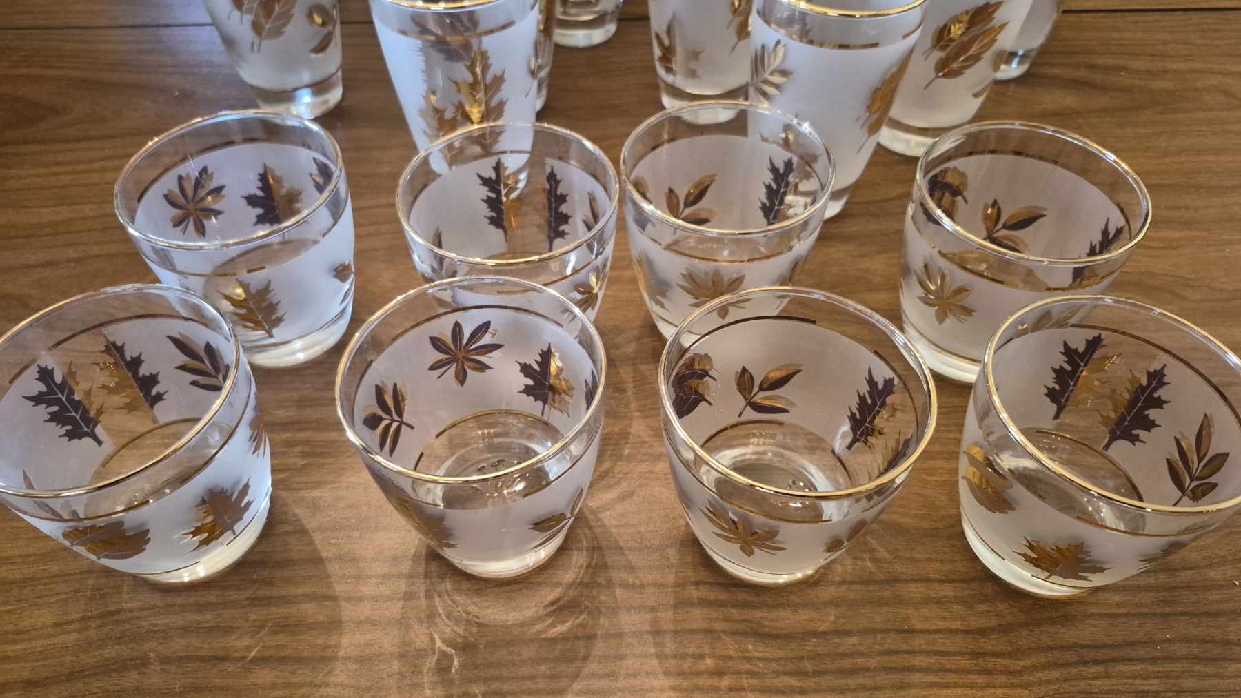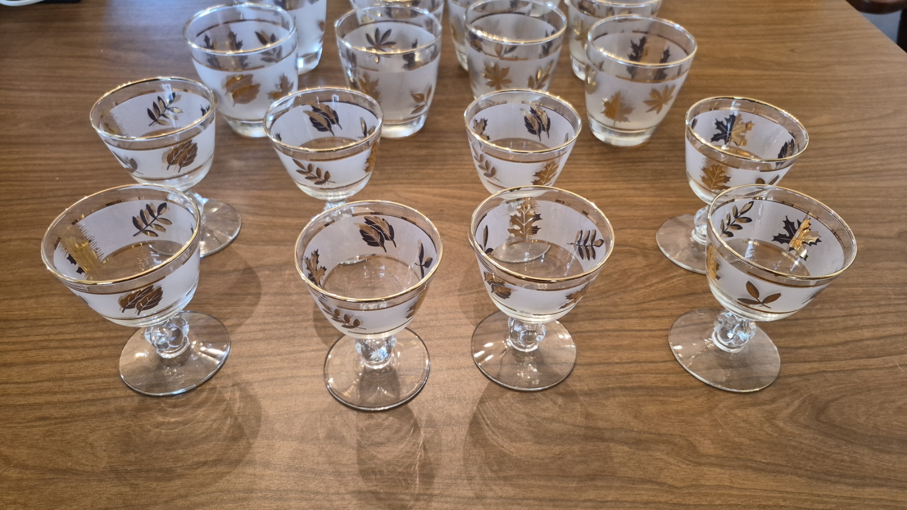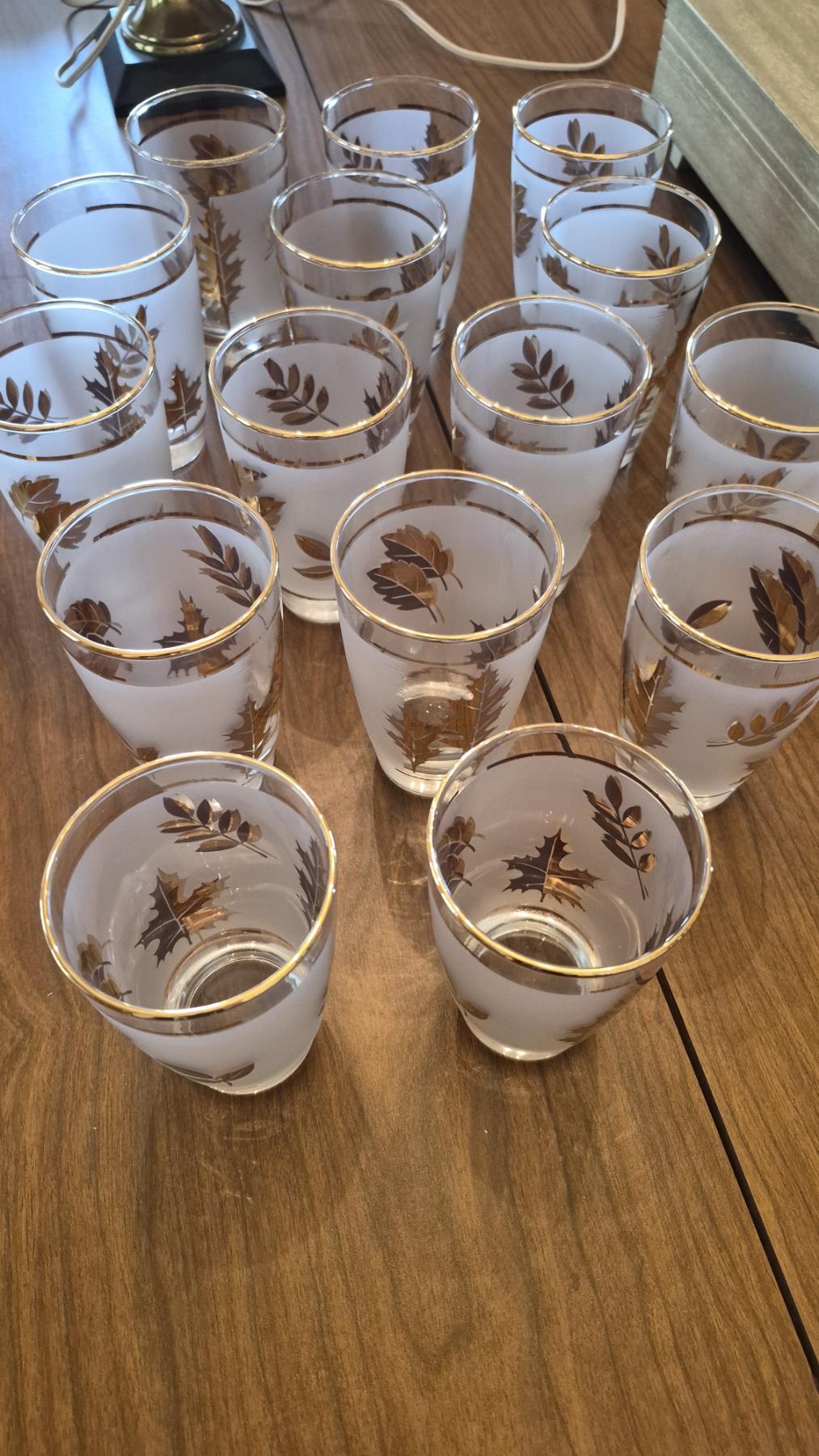 Pickup In Canton - Elegant 24k Gold Leaf Gilded Glassware As Shown - 30 Pcs Total - Glasses: 14 ea 4 3/4", 8 ea 3 1/2", 8 ea 4"