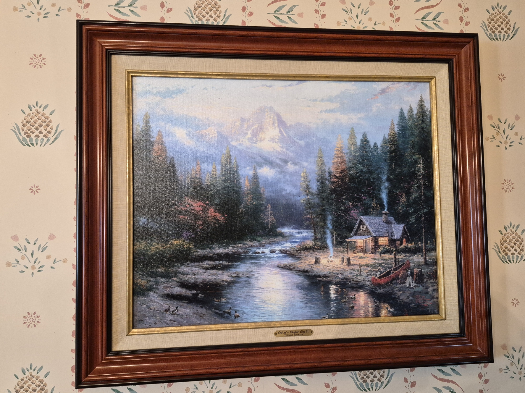 Pickup In Canton - THOMAS KINCADE Framed 22 x 28 Scenic Artwork On Textured Canvas Board