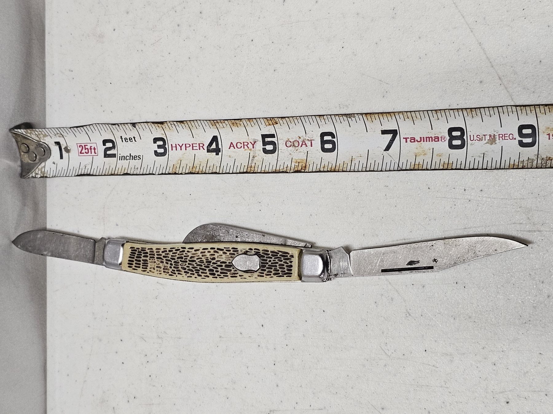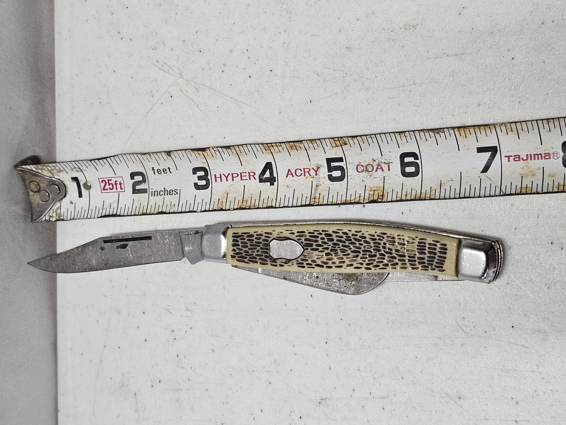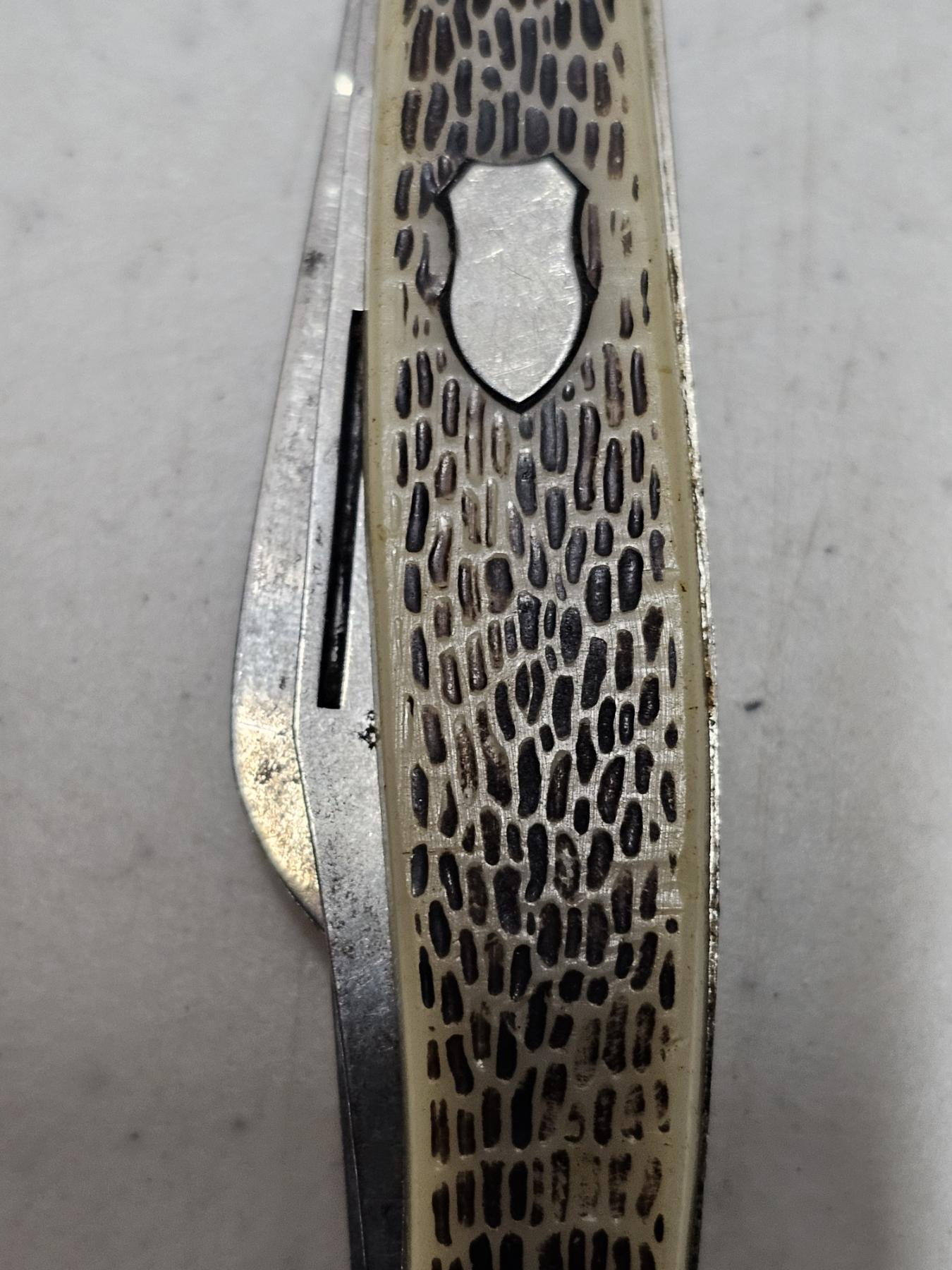 Pocket Knife (White Handle) - Length: 4' (Closed), 9" (max) (Opened), 3 Extensions, GREAT FOR A COLLECTION OR PRACTICAL USE!!! RARE DEAL!!! BID WHILE YOU CAN!!!