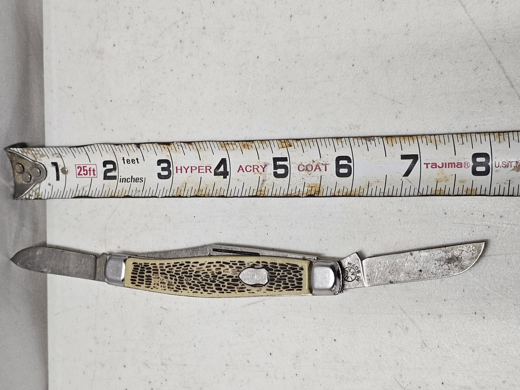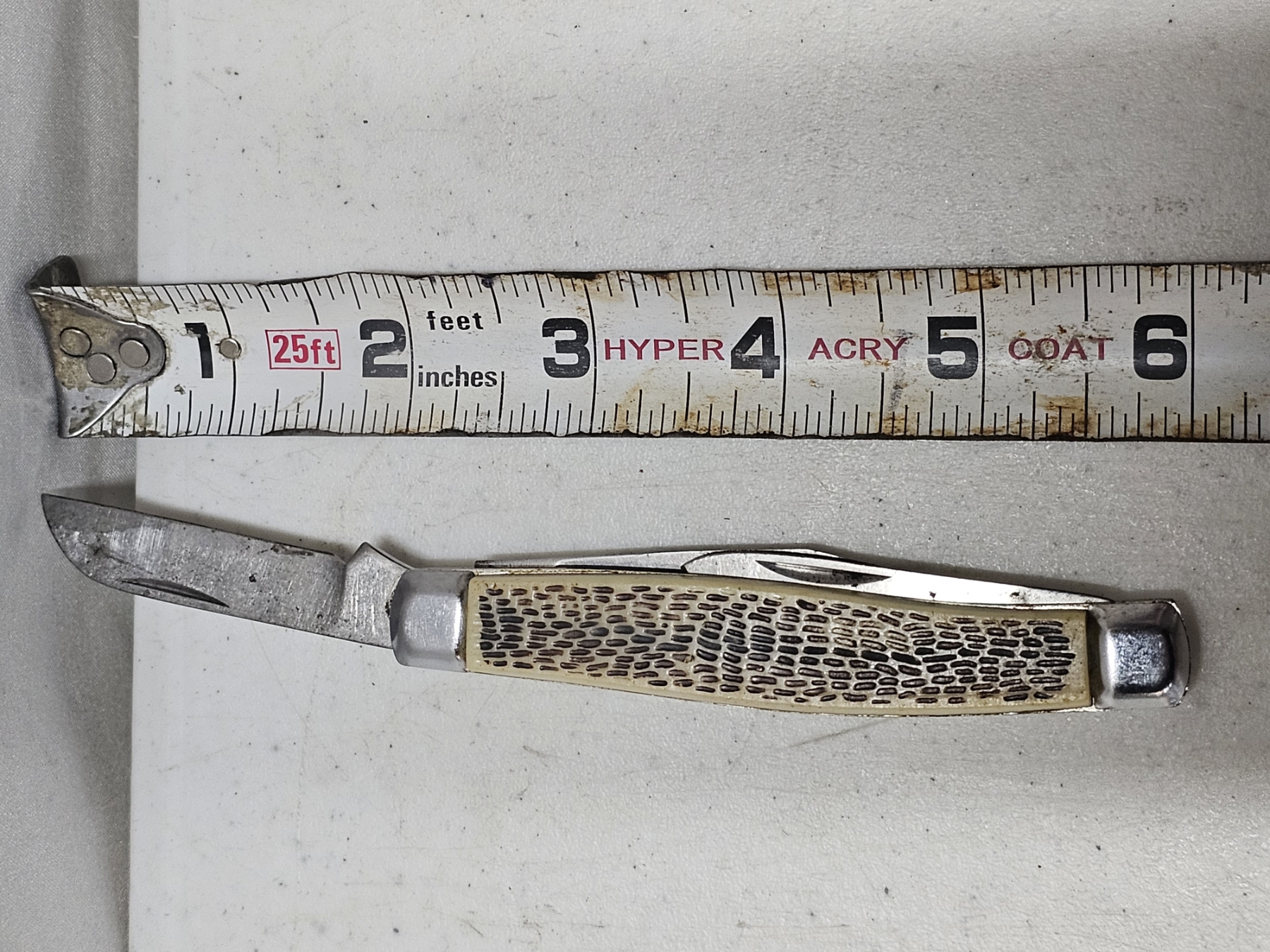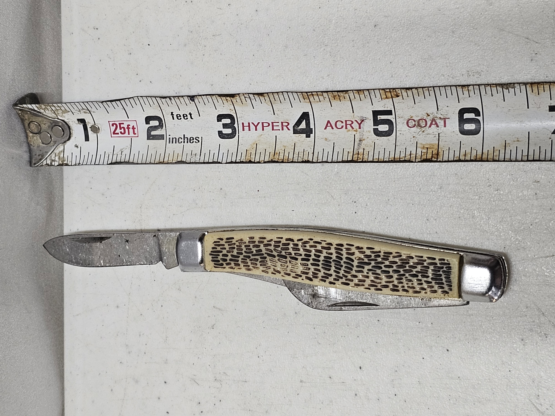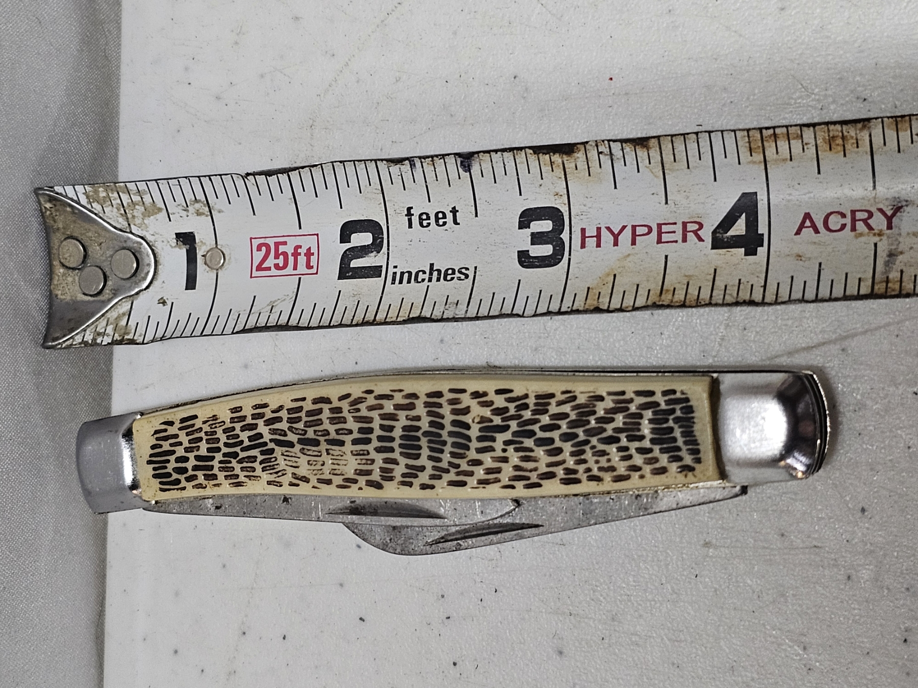Pocket Knife (White Handle) - Length: 4' (Closed), 9" (max) (Opened), 3 Extensions, GREAT FOR A COLLECTION OR PRACTICAL USE!!! RARE DEAL!!! BID WHILE YOU CAN!!!