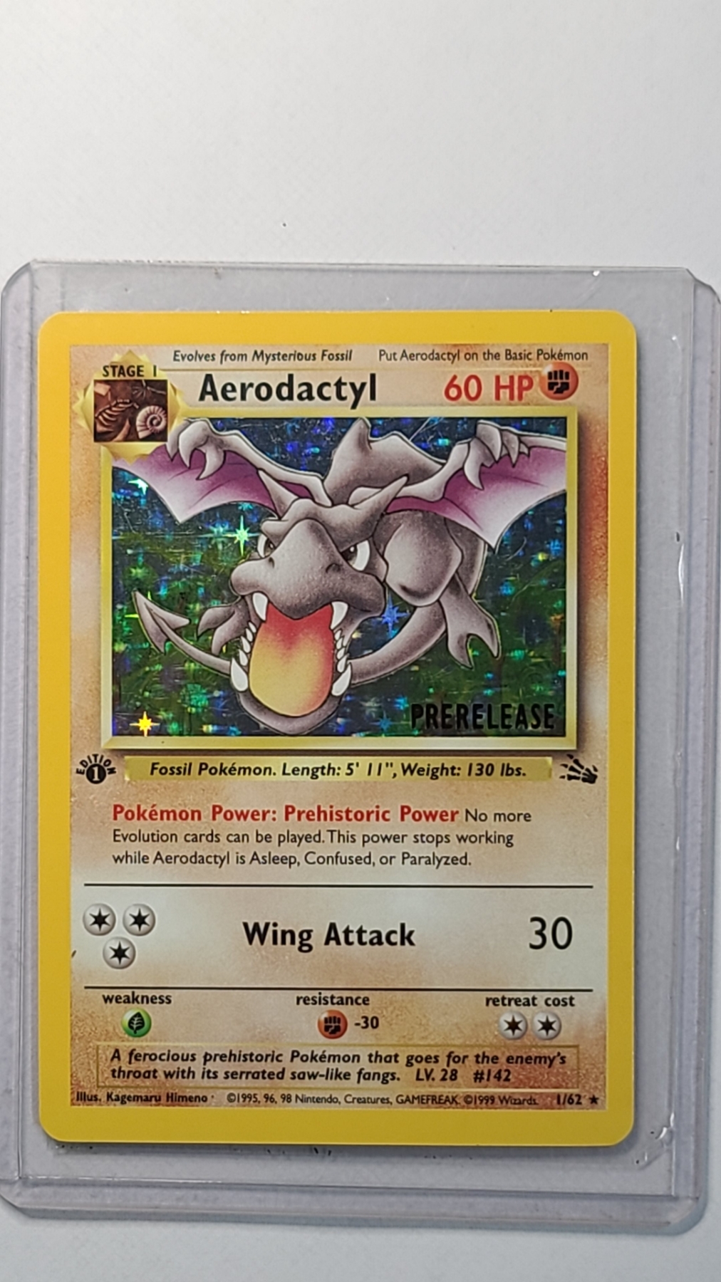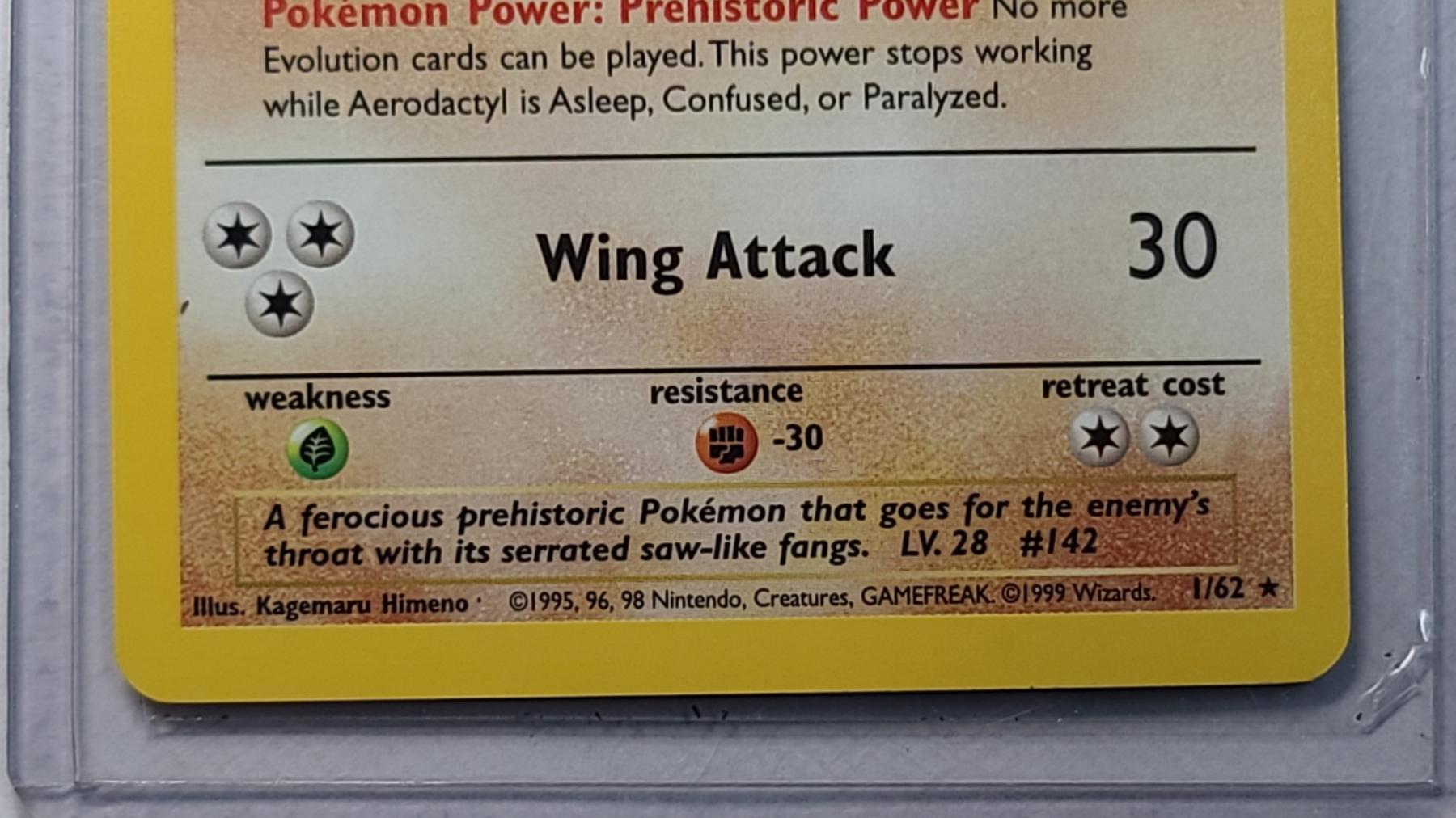 Pokémon TCG Aerodactyl #1/62 1st Edition Rare Prerelease Cosmos Holo Trading Card From The Fossil Set