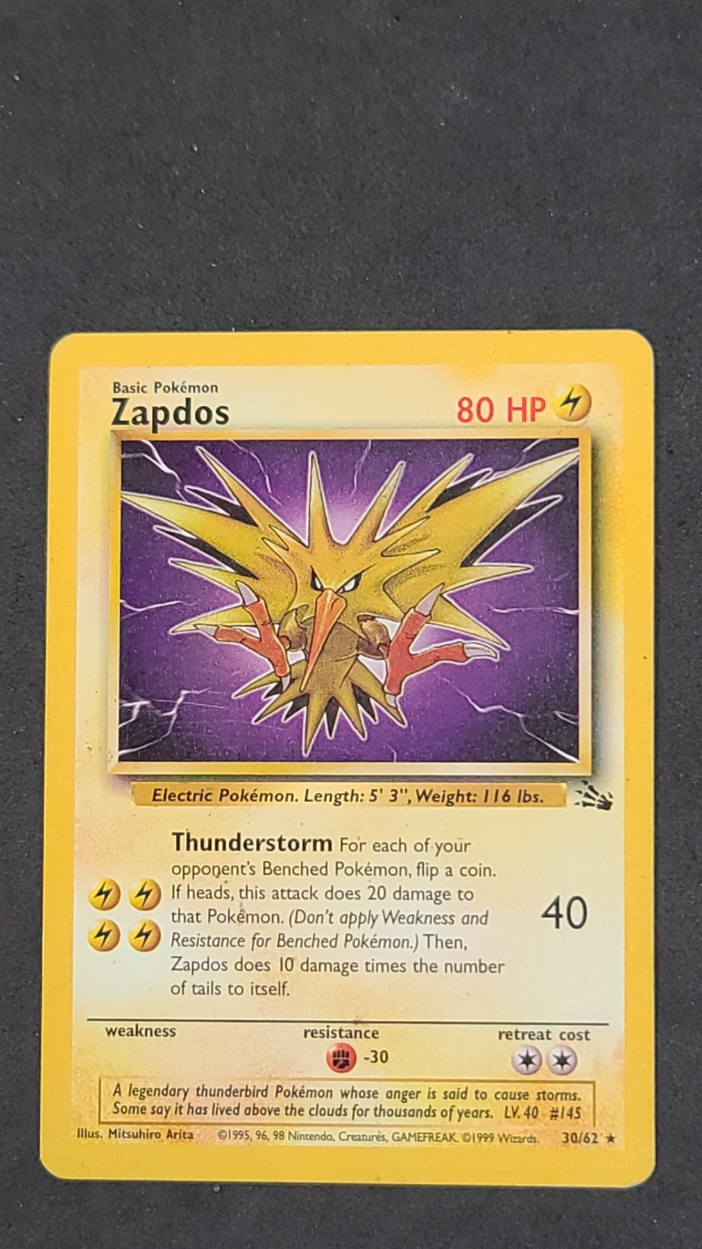Pokémon TCG Zapdos #30/62 Non-Holo Rare Card From The Fossil Set