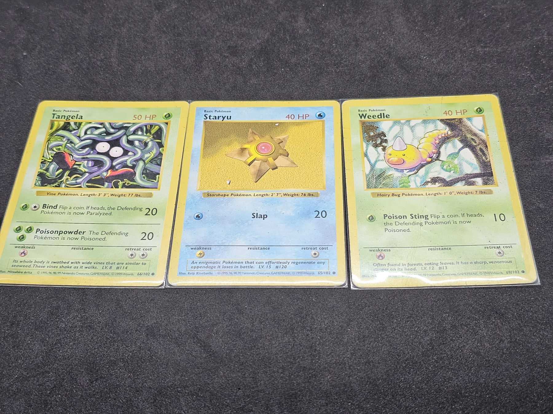 Pokemon Vintage Trading Cards - Shadowless (Lot of 3) - ft. Weedle, Staryu, and Tangela - GREAT CONDITION!!! A MUST HAVE FOR ANY POKEMON PLAYER!!! PLACE YOUR BID AND CATCH THEM ALL TODAY!!!