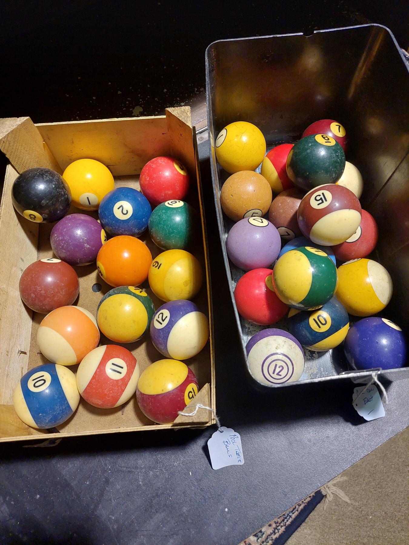 Pool Balls - Full Size - 1 Complete Set & 17 Extras Various Numbers - See Pics