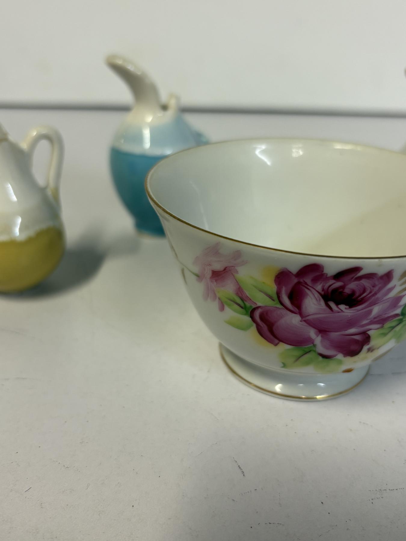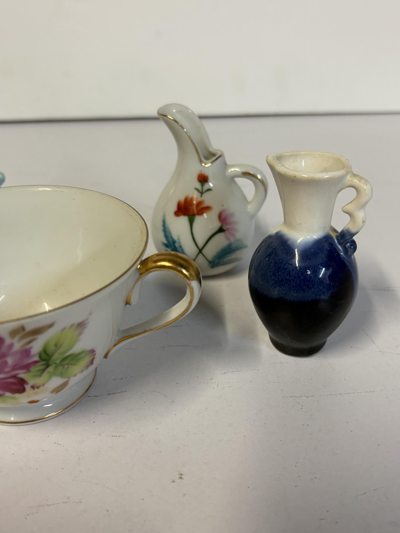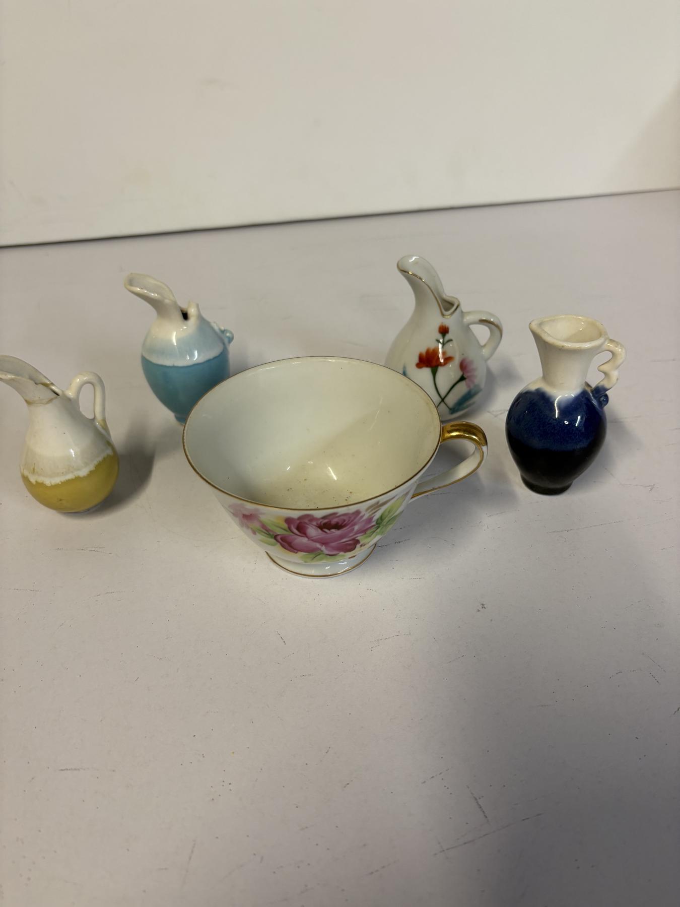 Porcelain Japanese Mini Pitchers and Floral Teacup