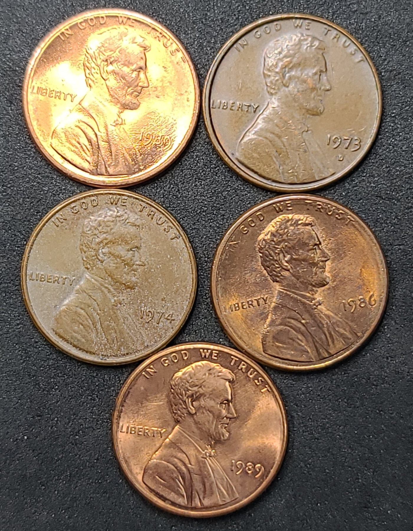 Possible Rotated Die Lincoln Cents - 1973-D, 1974, 1986, 1989 x2 - Face Value: $0.05
