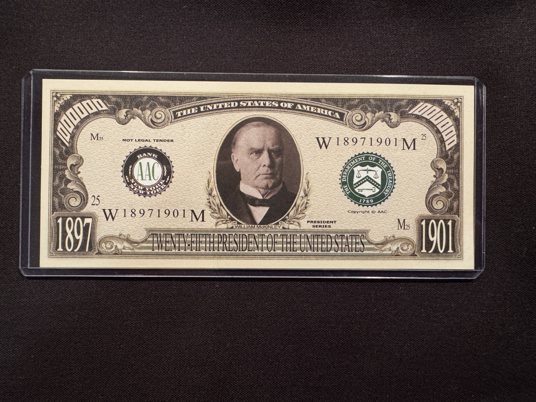 President William McKinley Canton, Ohio One Million Dollar Bill - Mint Condition