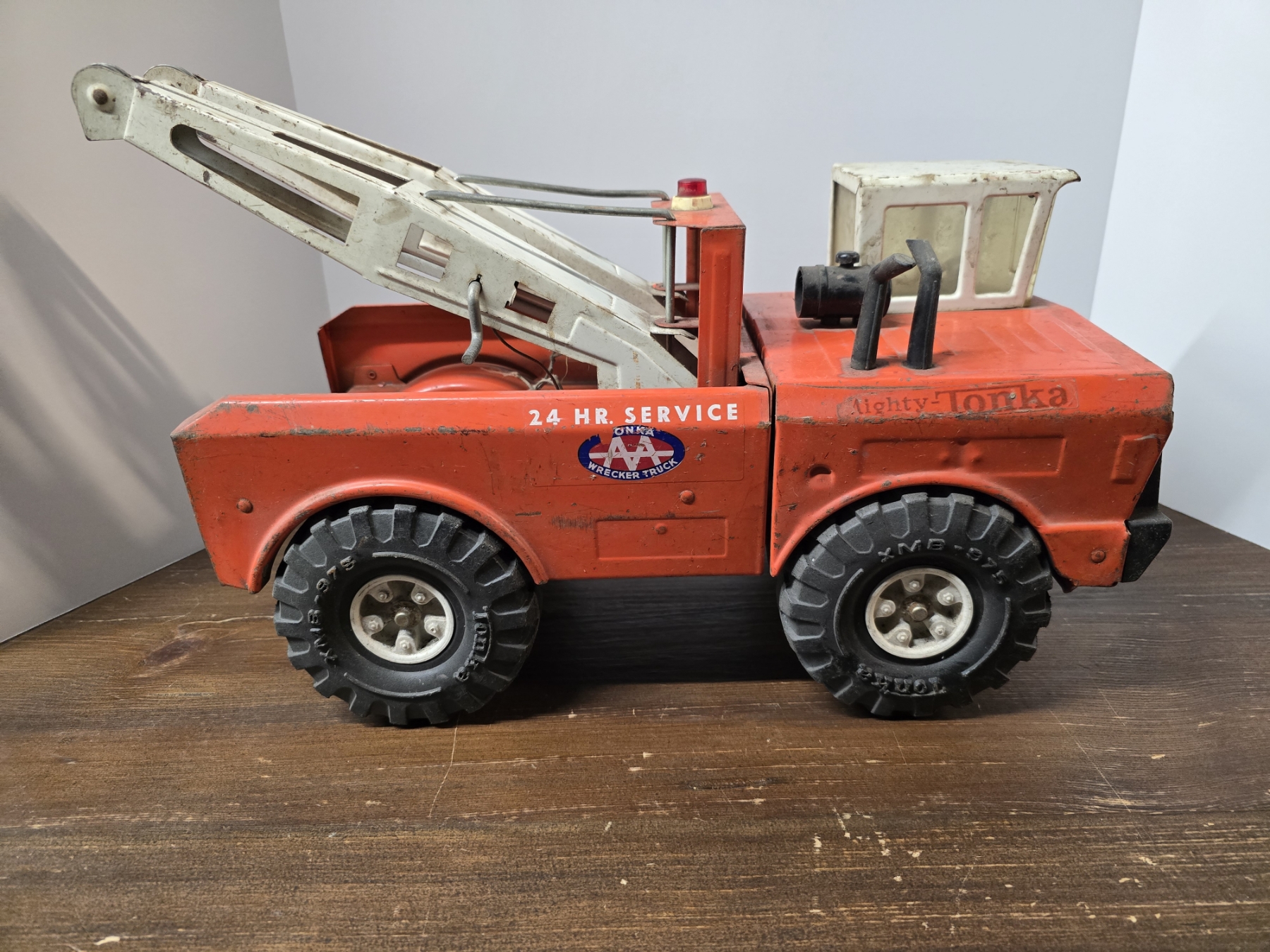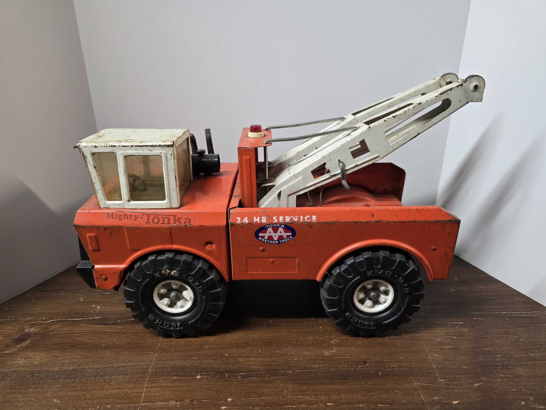 Pressed Steel Mighty-Tonka Orange Tow Truck 16Lx9.5Tx7W