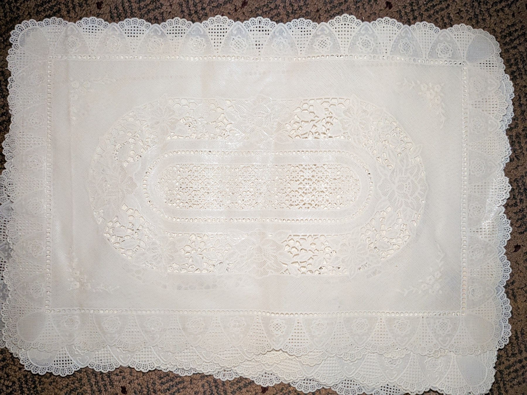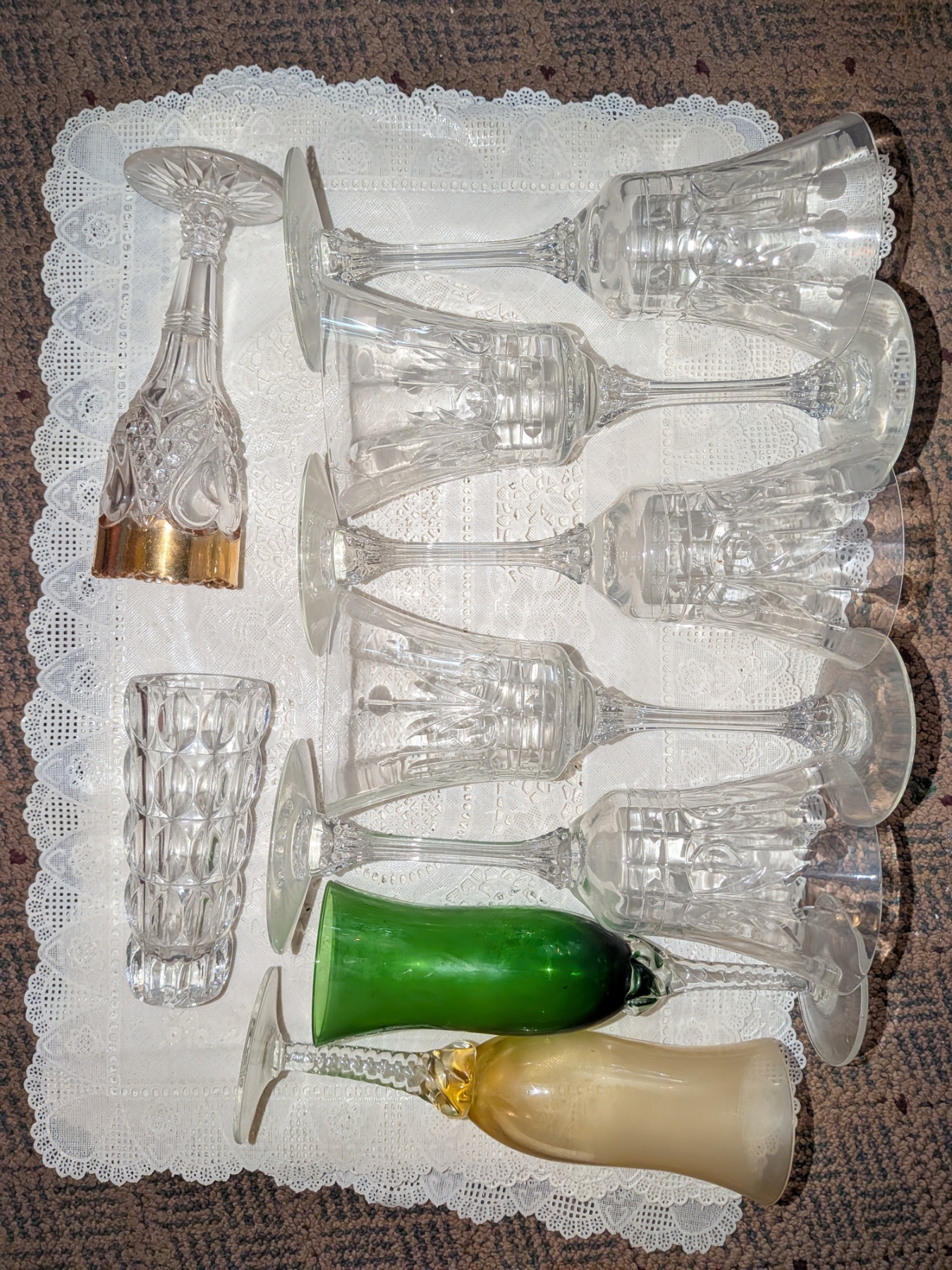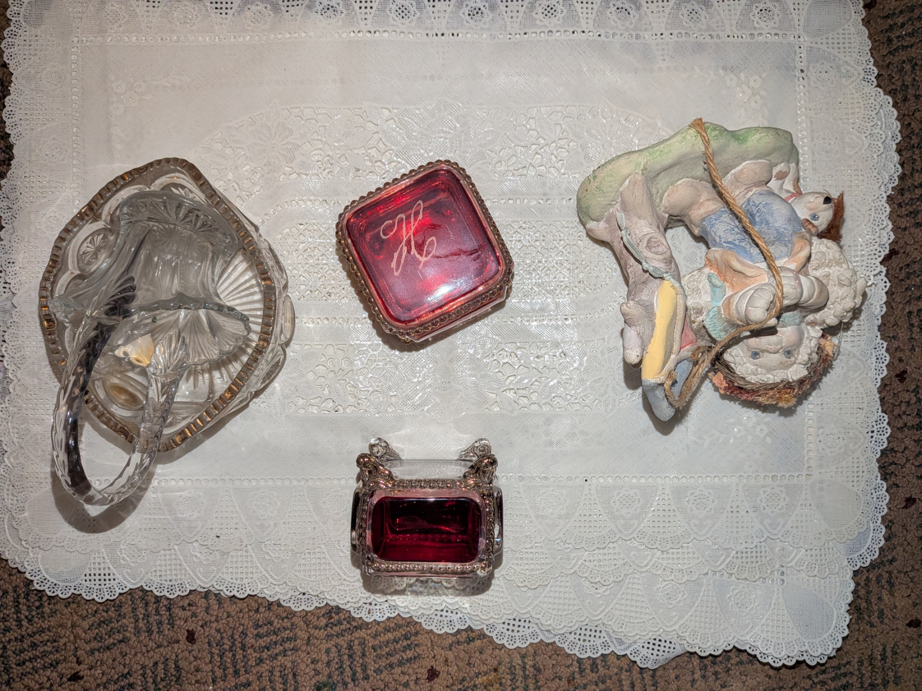 Pretty Drinkware, MCM Vinal Lace Placemats, Red Glass Trinket Dishes, And More