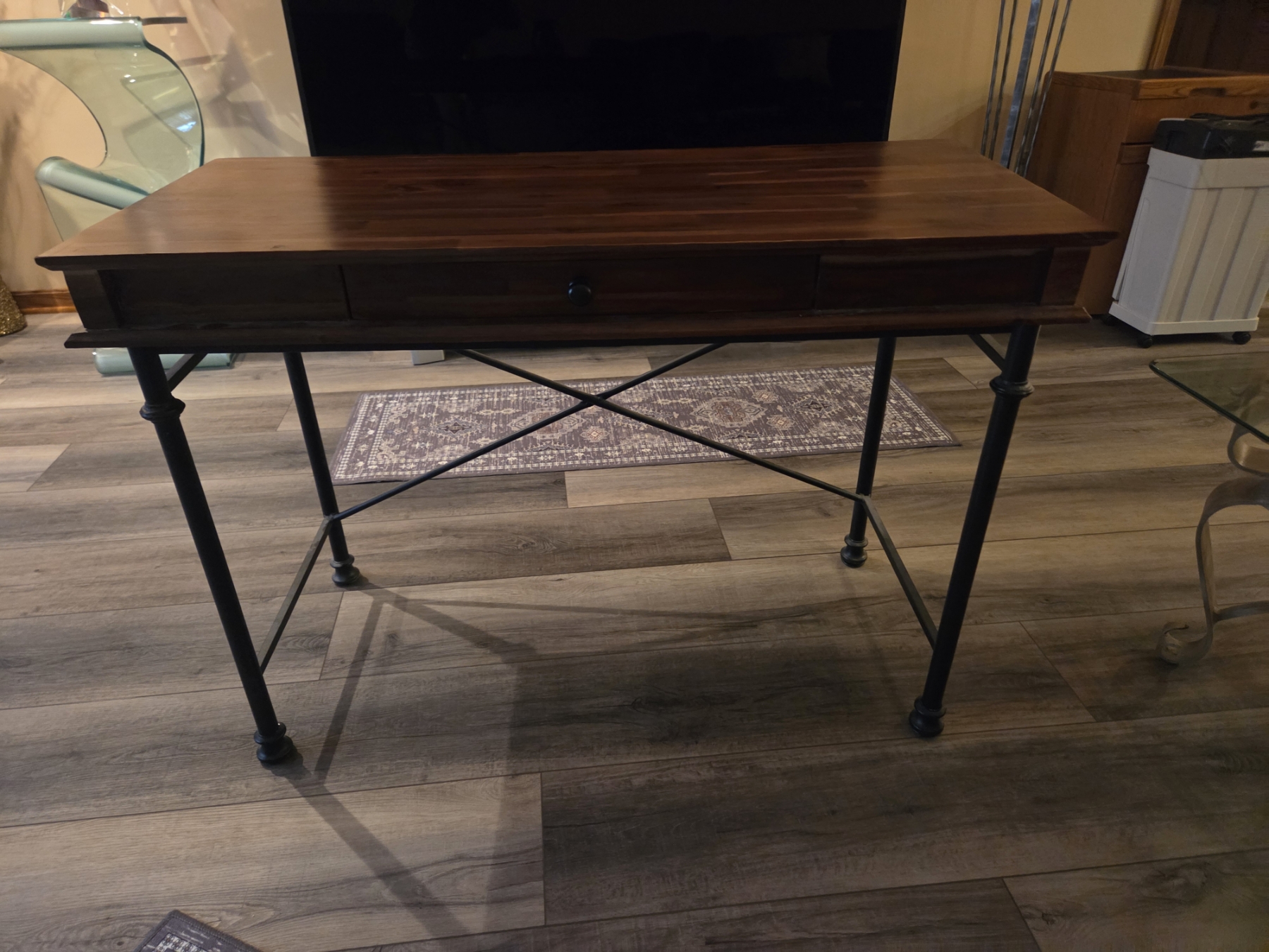 Pretty Wood And Metal Hall Table 43"x30"
