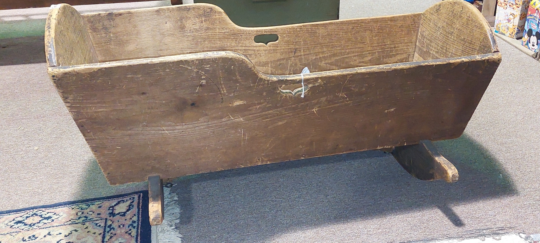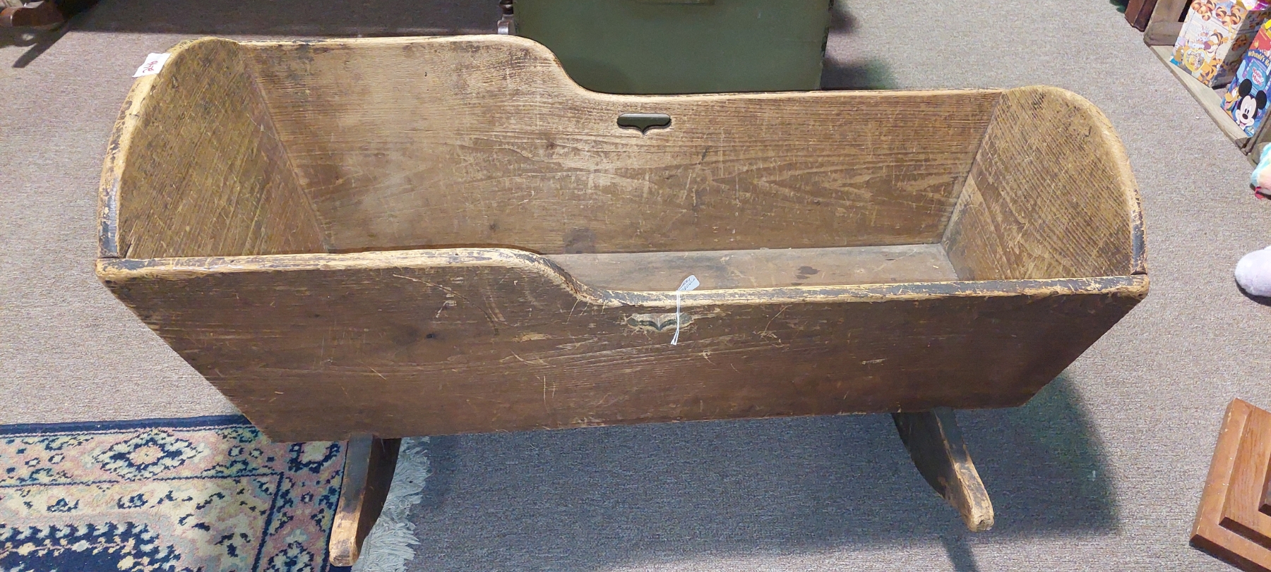 Primitive - Colonial Hand Made Wooden Child Rocking Bed - See Pics