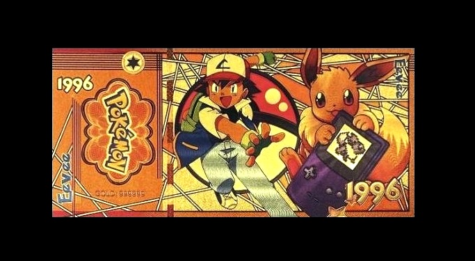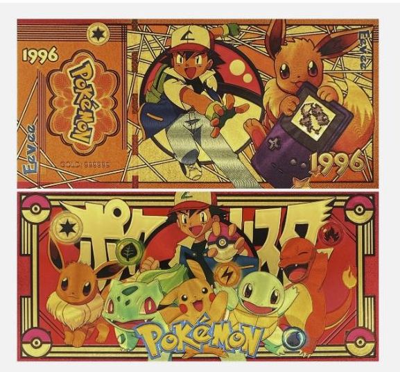 Pure 24k .999 Gold Foil POKEMON "EEVEE" Note - Mint - NEW SERIES - Processed in Pure GOLD