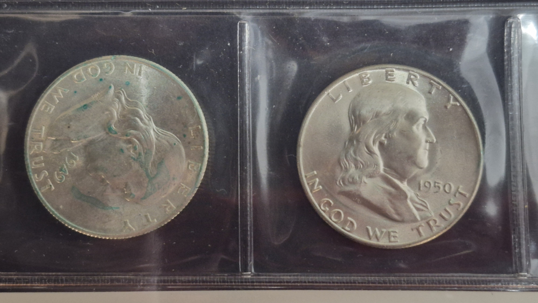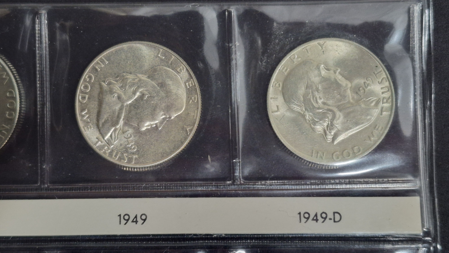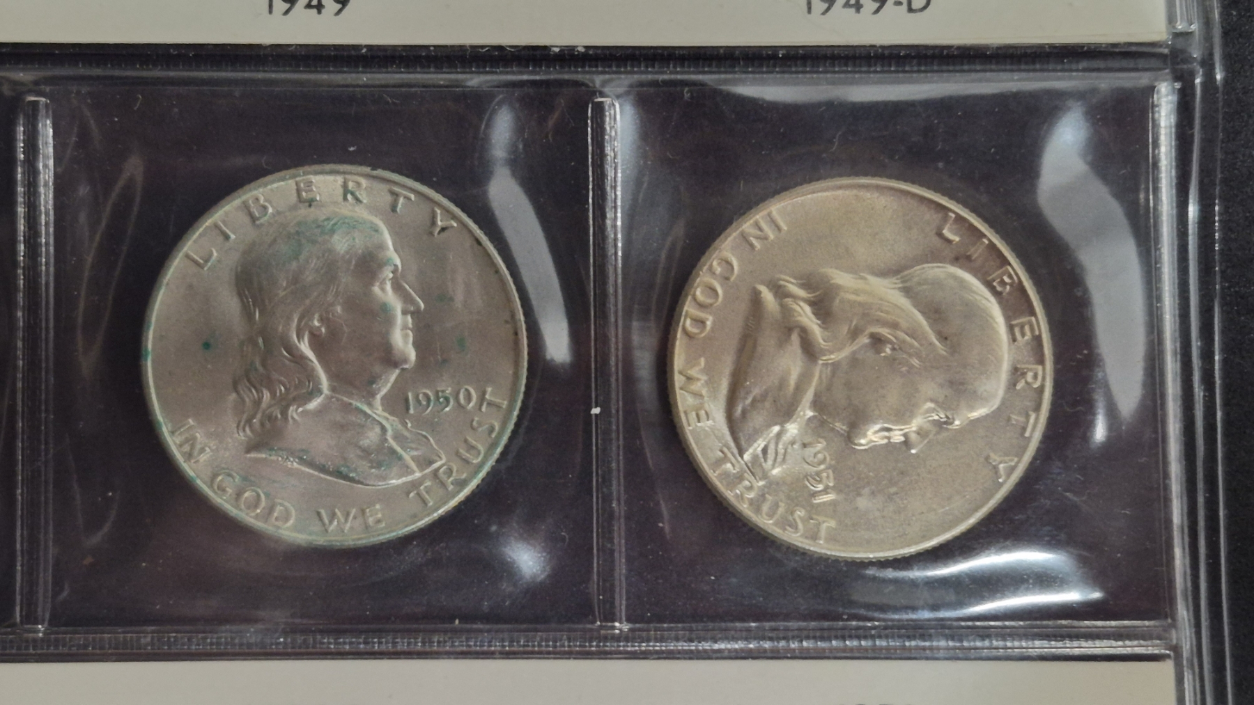 Qty 8 - Frankin Half Dollars In BU Condition In Sealed Sleeve Page 1948 Thru 1951 90% Silver - Dates Are: 1948 P & D, 1949 P -D & S, 1950 P & D, 1951 P