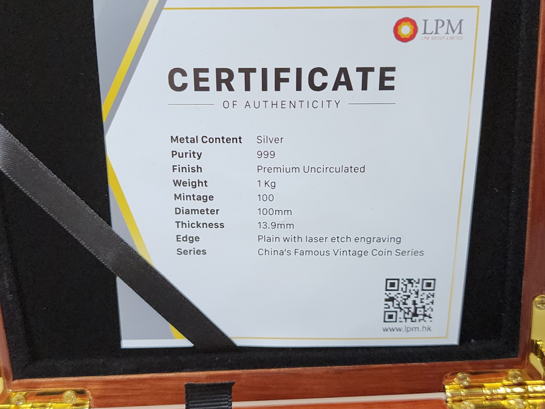 Includes display box with latch and certificate of authenticity