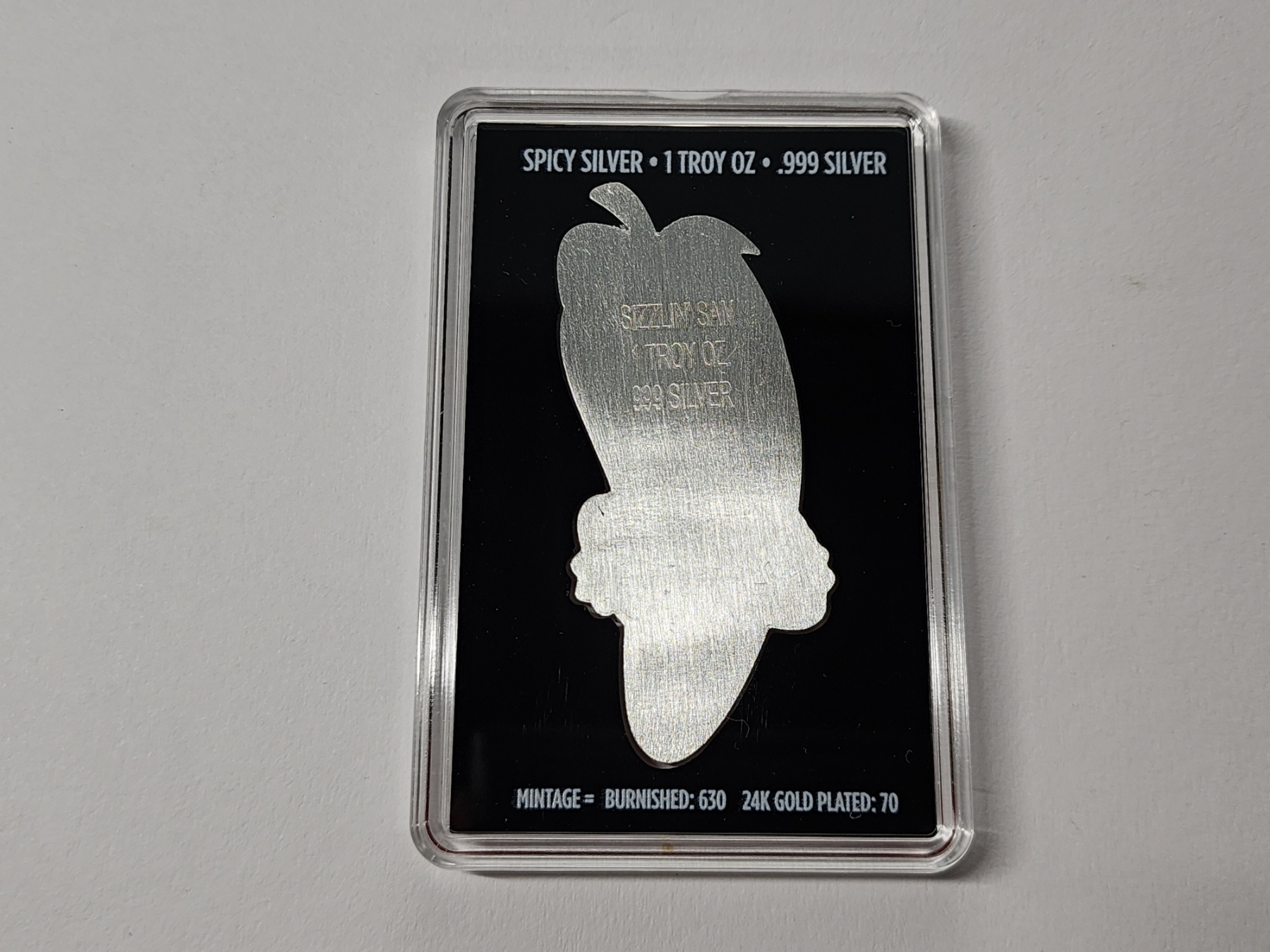 RARE 630 Mintage "Spicy Silver Sizzlin Sam" 1 Troy Ounce 999 Silver Art Bar