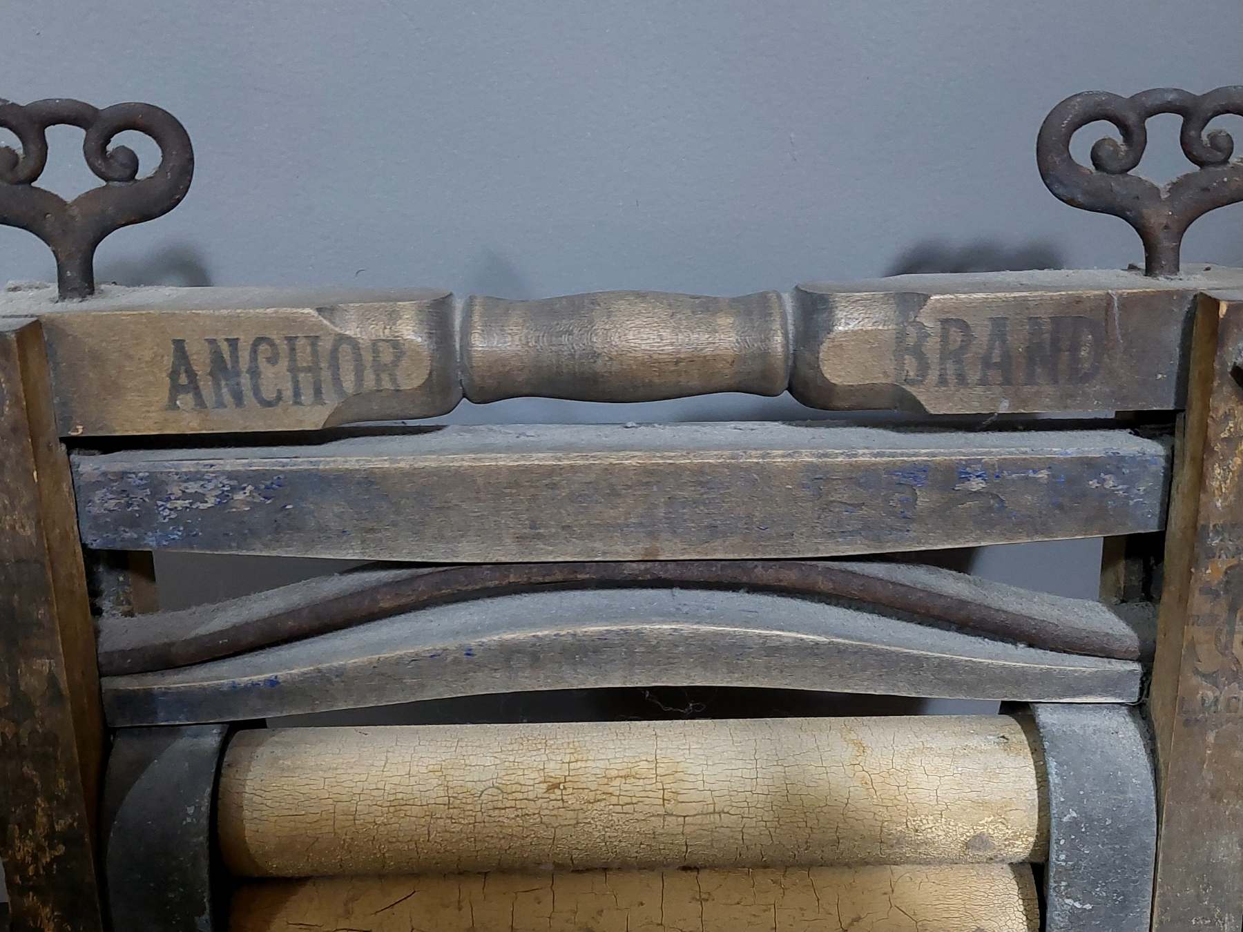 RARE "ANCHOR" Brand Wooden Frame Clothes Wringer 14 x 16 - See Pics