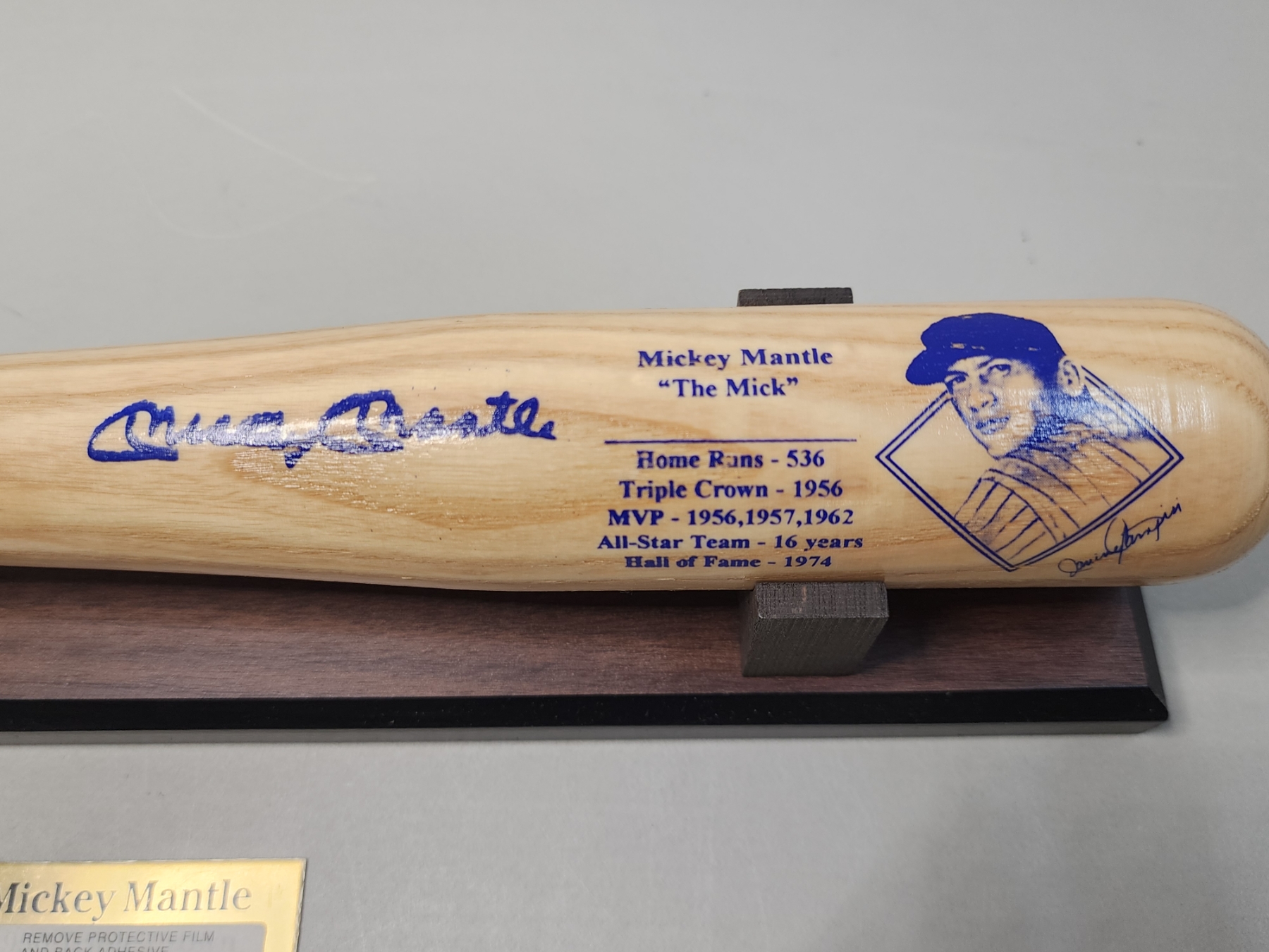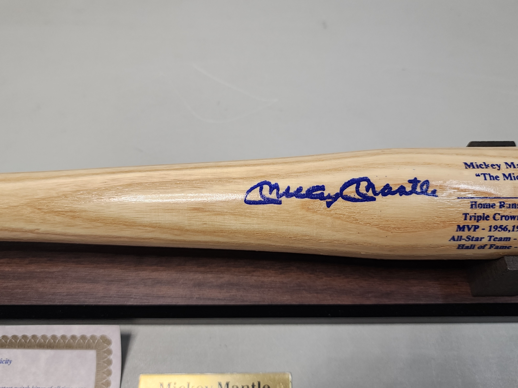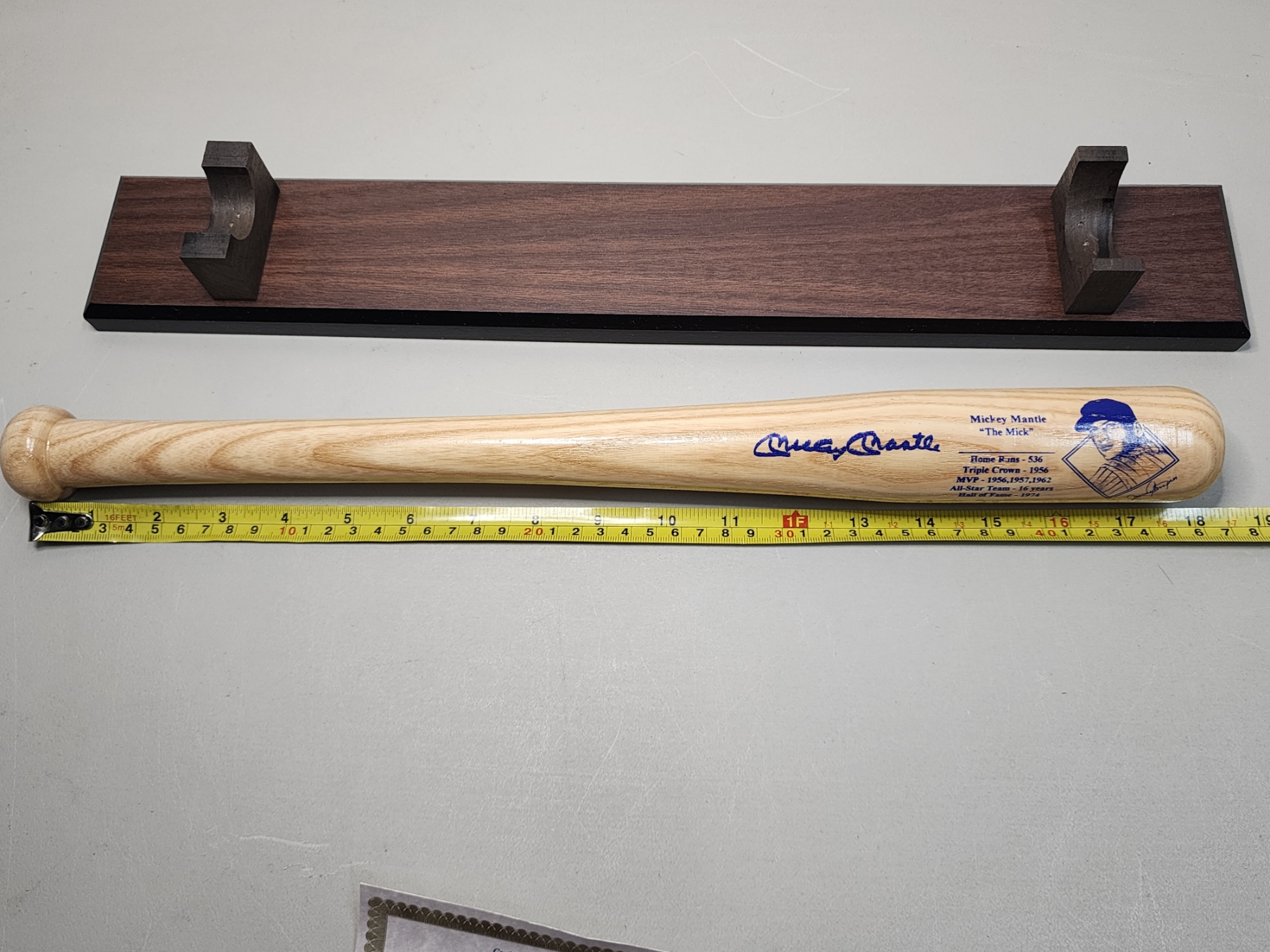 RARE Signed Mickey Mantle 1956 Triple Crown 18" Baseball Bat with Stand and Certificate of Authenticity