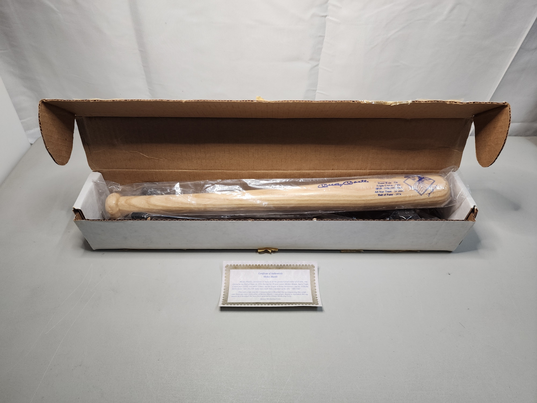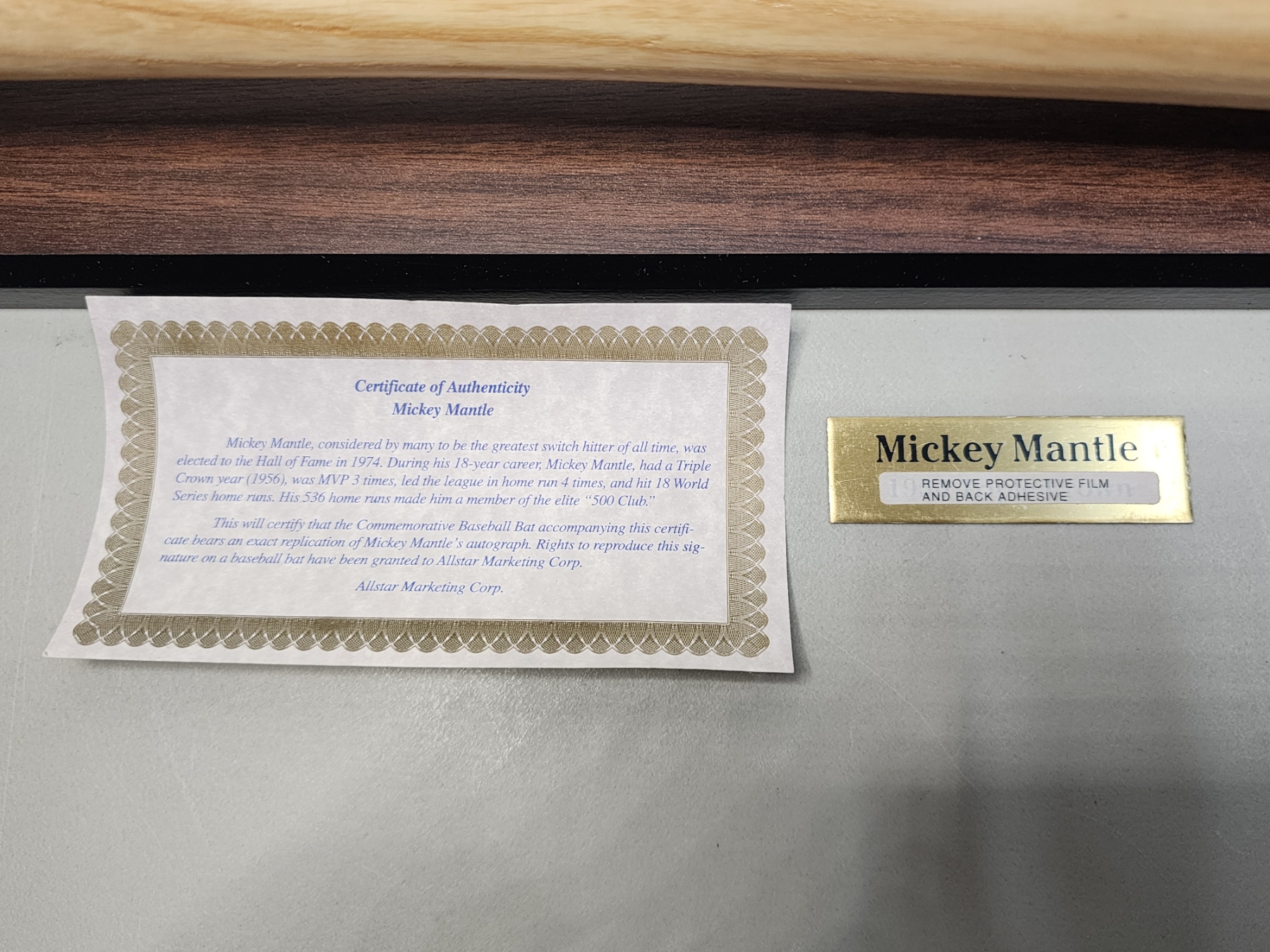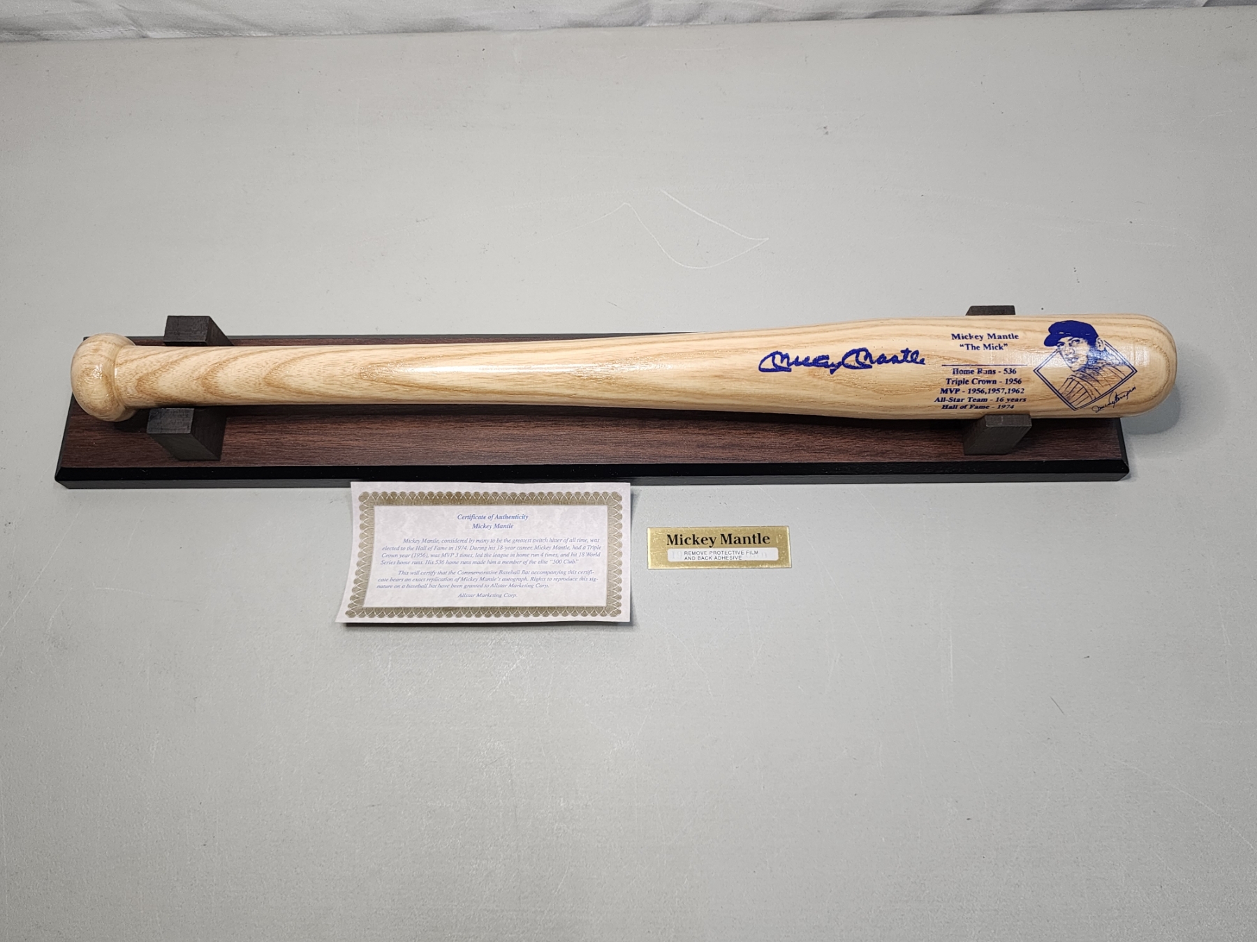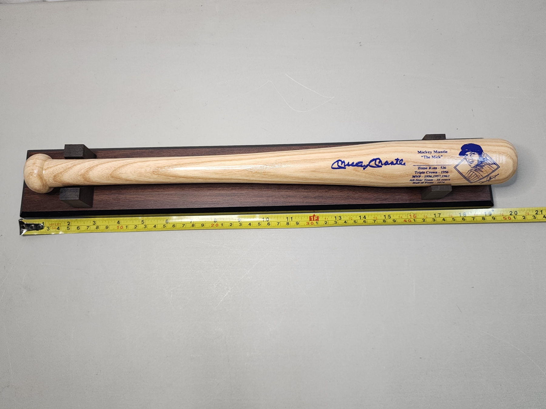 RARE Signed Mickey Mantle 1956 Triple Crown 18" Baseball Bat with Stand and Certificate of Authenticity