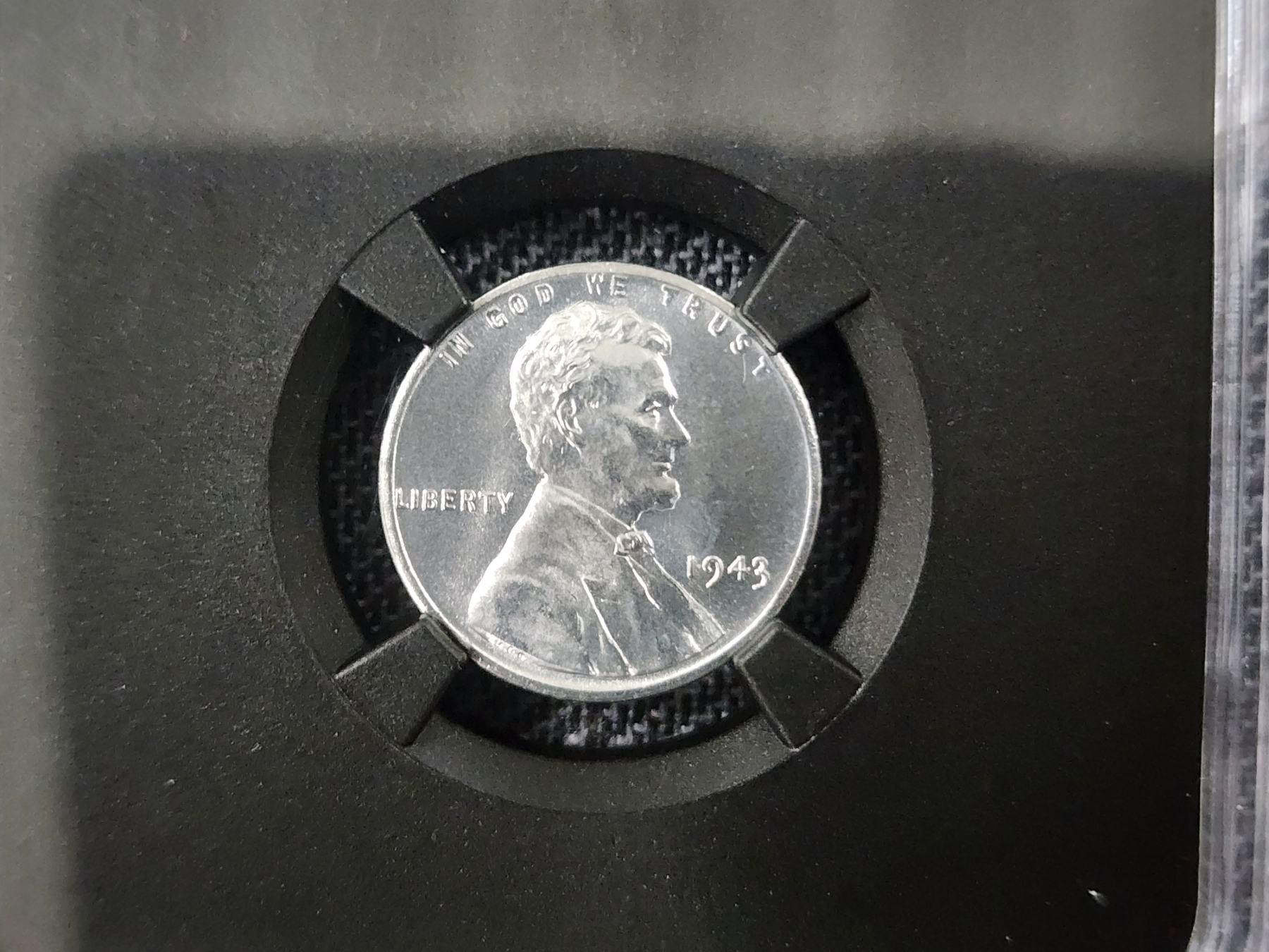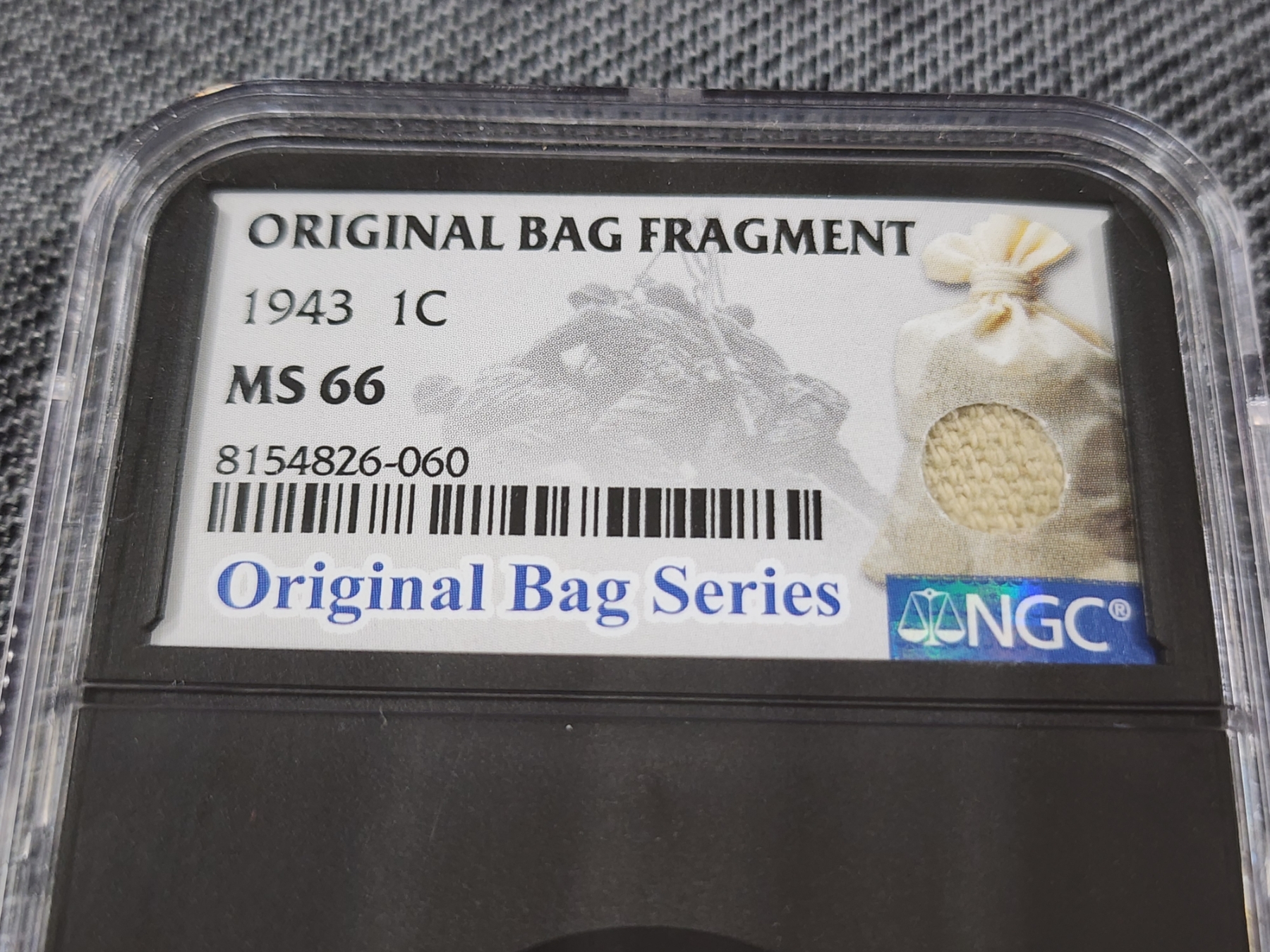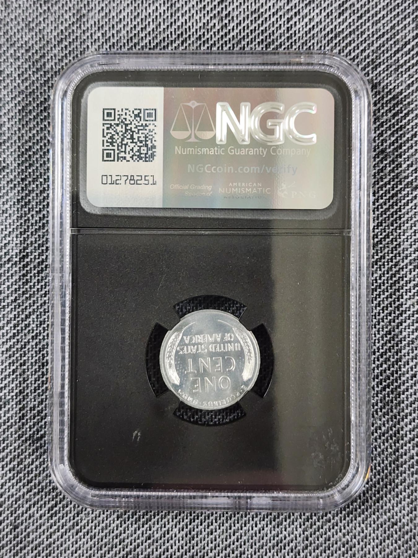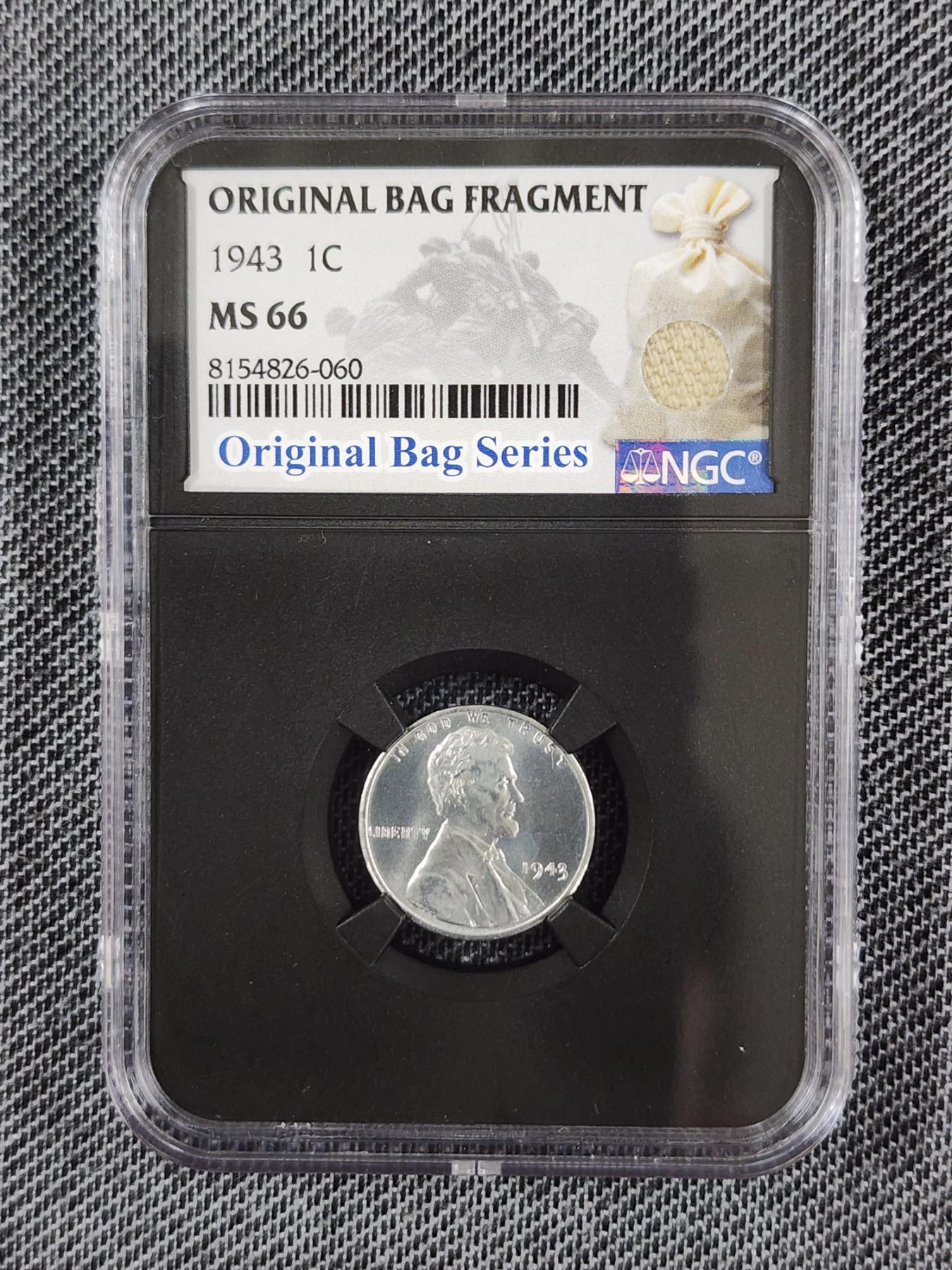 *RARE UNIQUE GRADED COIN* ~ NGC MS66 Graded 1943 Steel Penny With Original Bag Fragment In Slab! This Graded Steel Penny is in great condition and features a real fragment of the original bag inside the slab!