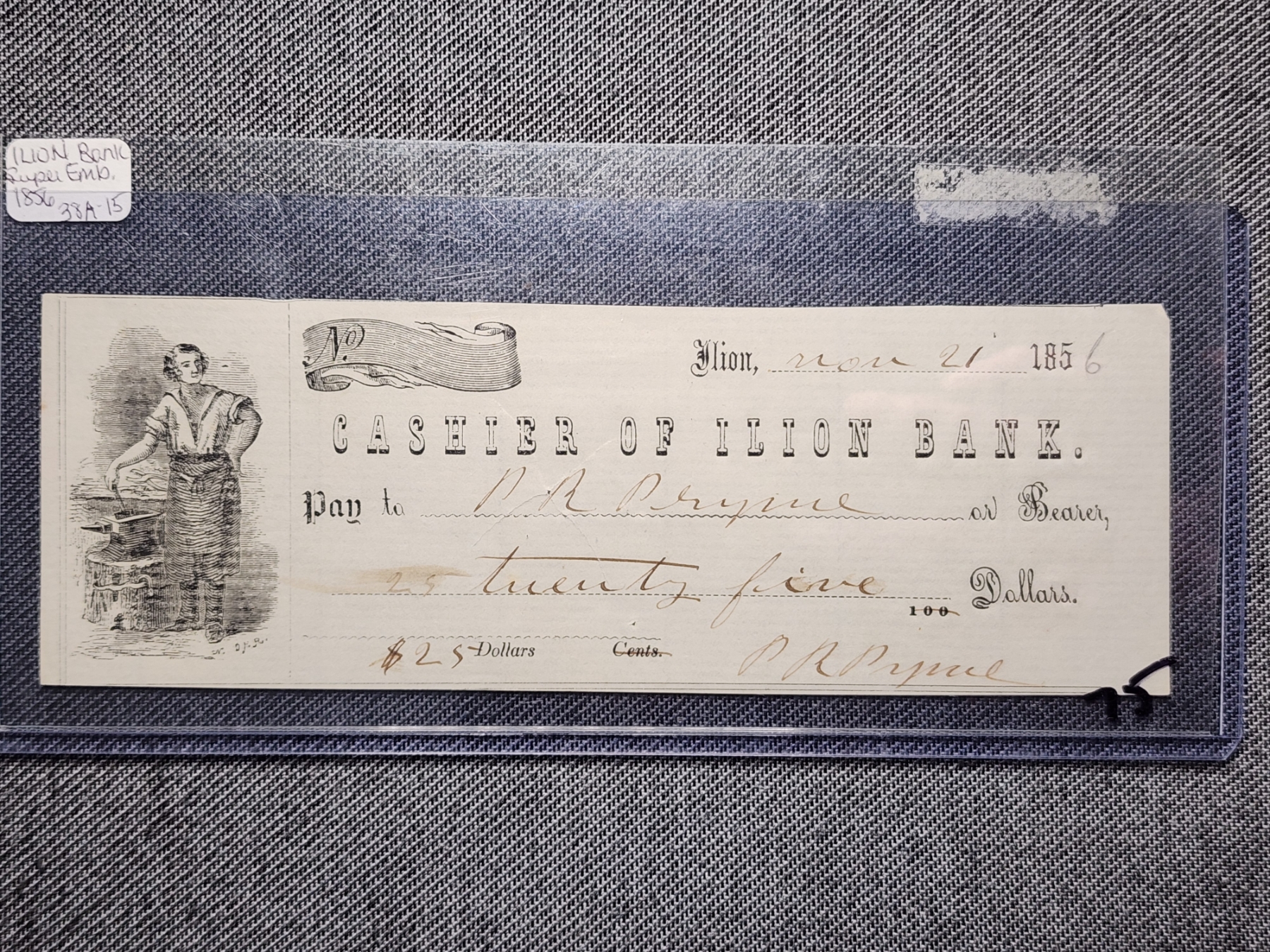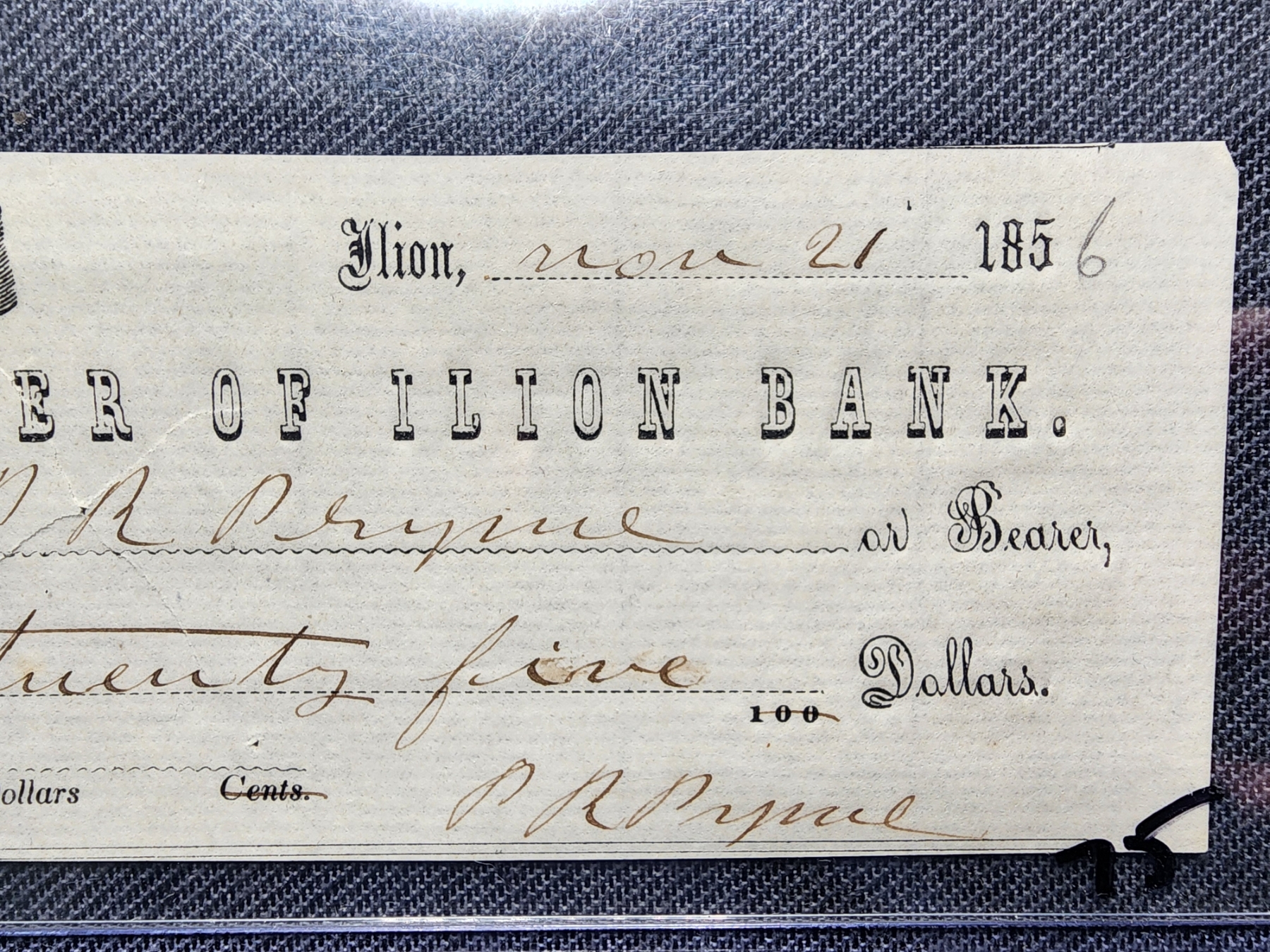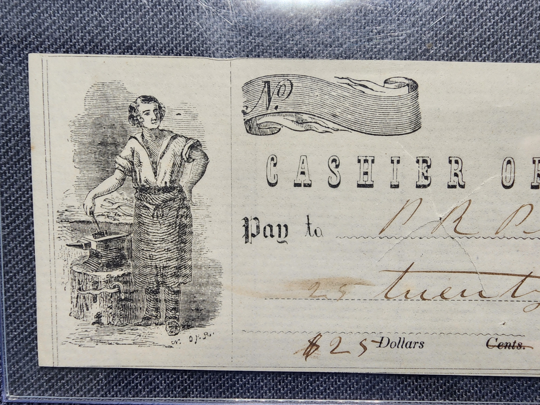 Rare 1856 Cashier of Ilion Bank 25 Dollar Paper Check in Good Condition!