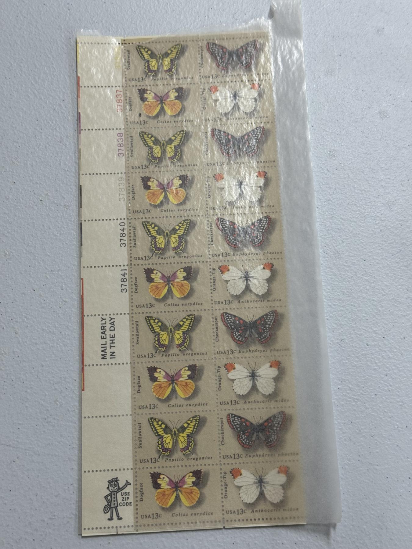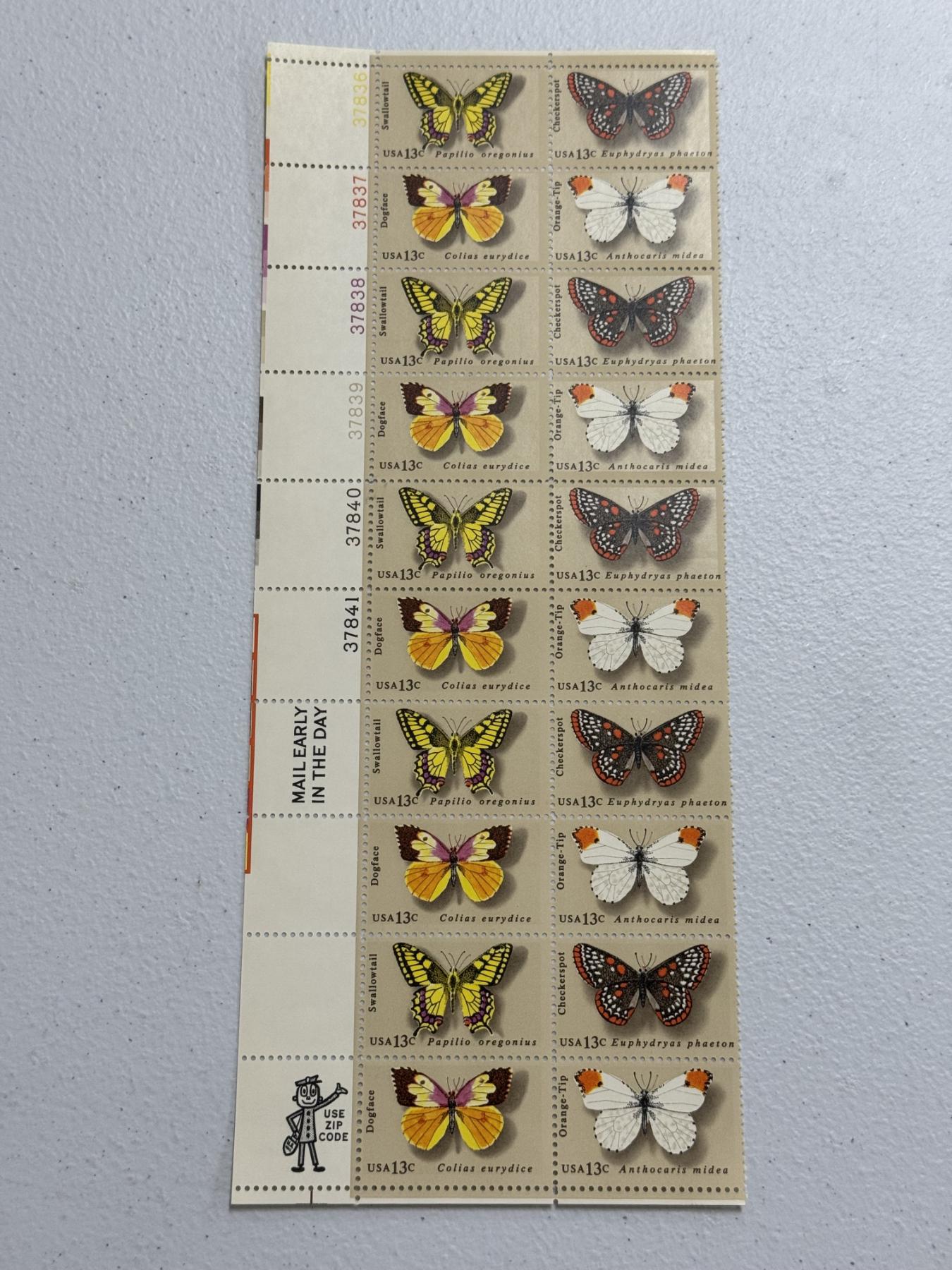 Rare Butterfly 13 Cent Block Plate US Stamps - Mint Condition