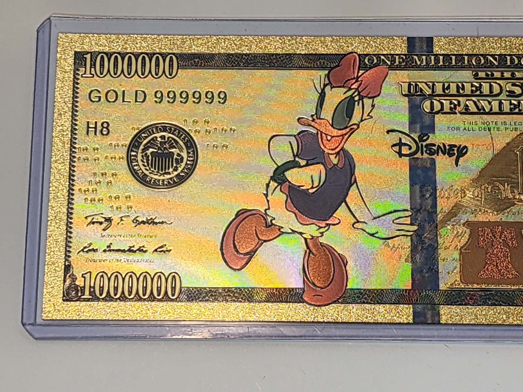 Rare Disney Daisy Duck Gold Foil .999999 - 24K Gold Note In Protective Holder - Mint Condition