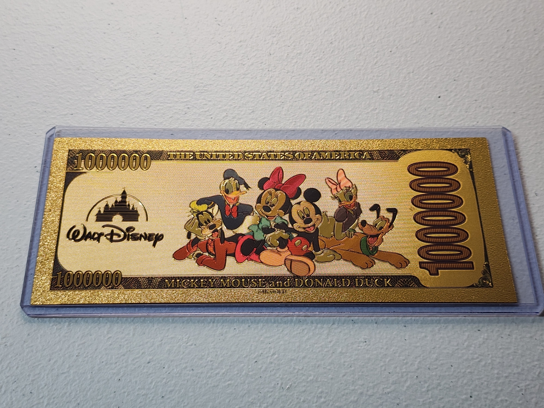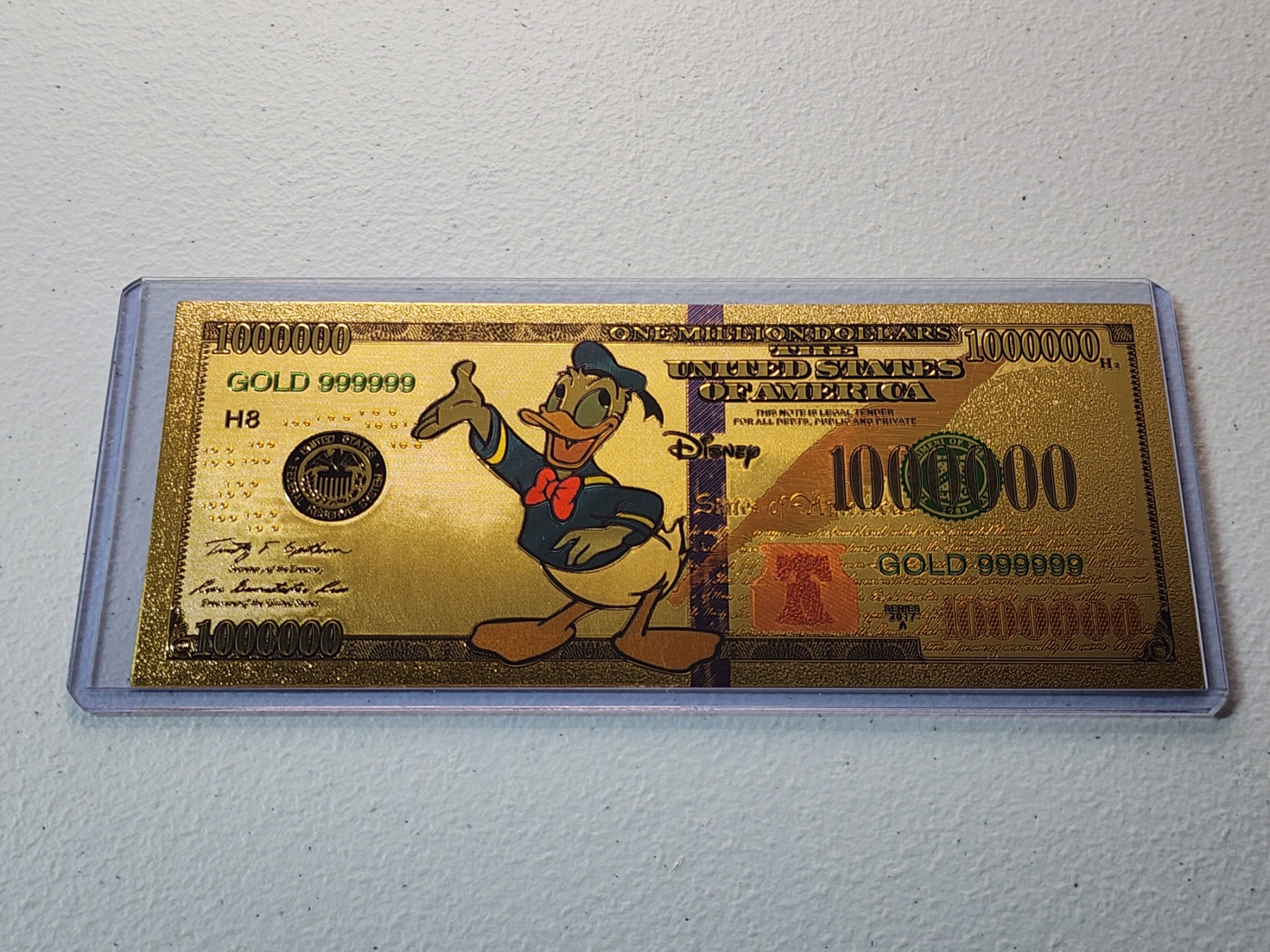 Rare Disney Donald Duck Gold Foil .999999 - 24K Gold Note In Protective Holder - Mint Condition