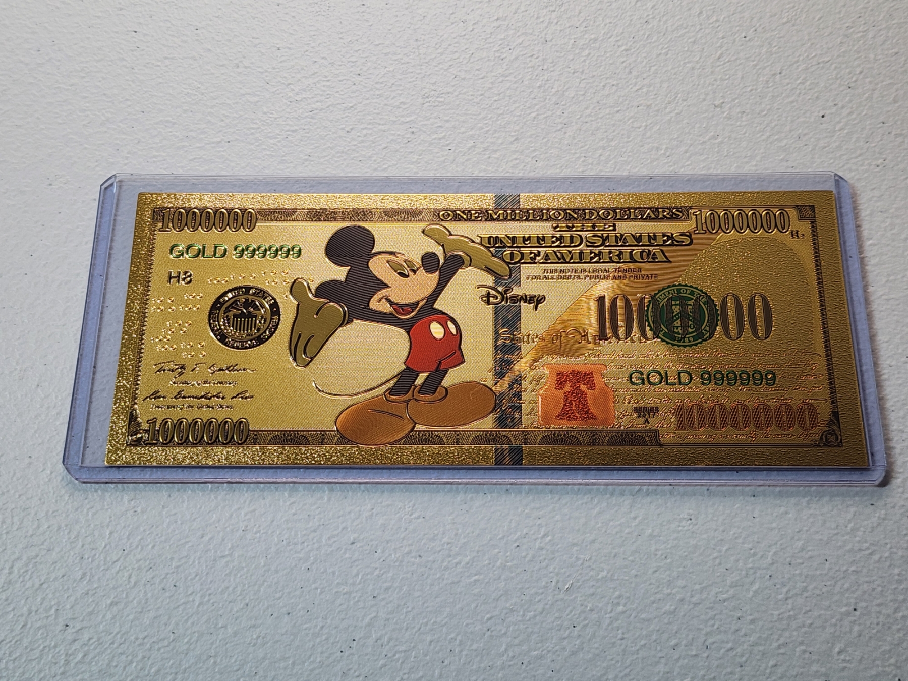 Rare Disney Mickey Mouse Gold Foil .999999 - 24K Gold Note In Protective Holder - Mint Condition