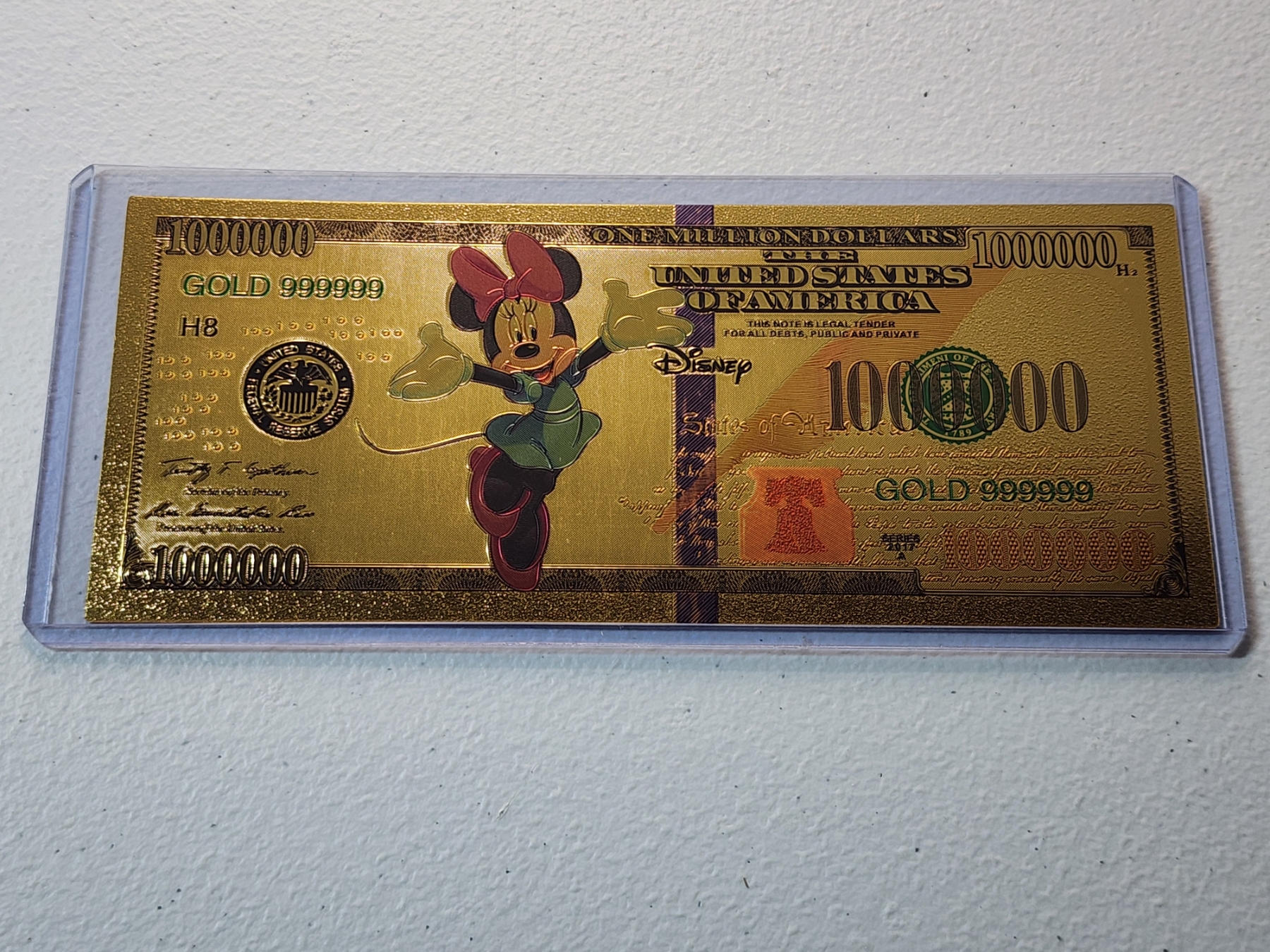 Rare Disney Minnie Mouse Gold Foil .999999 - 24K Gold Note In Protective Holder - Mint Condition