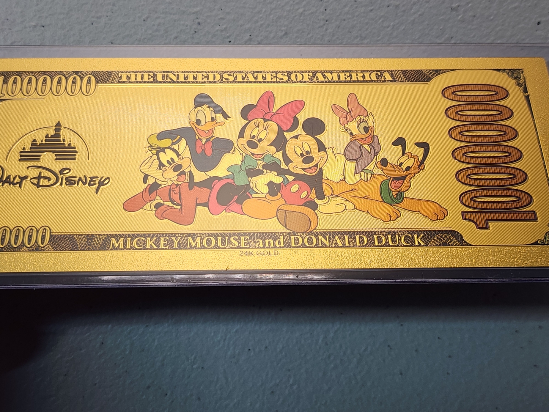 Rare Disney Minnie Mouse Gold Foil .999999 - 24K Gold Note In Protective Holder - Mint Condition