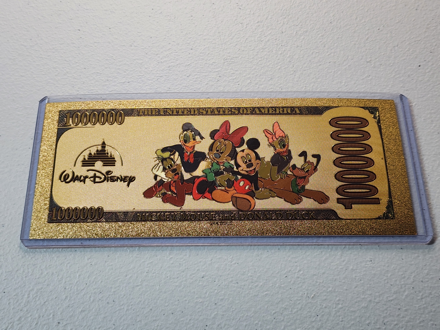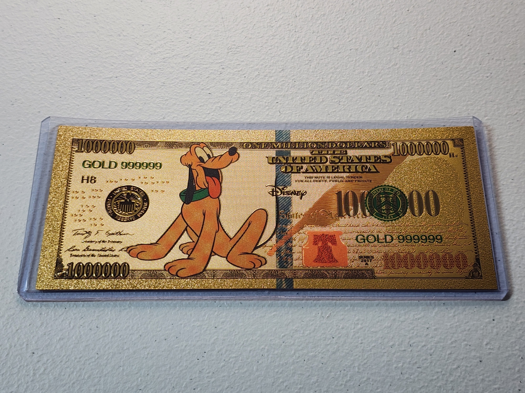 Rare Disney Pluto Gold Foil .999999 - 24K Gold Note In Protective Holder - Mint Condition