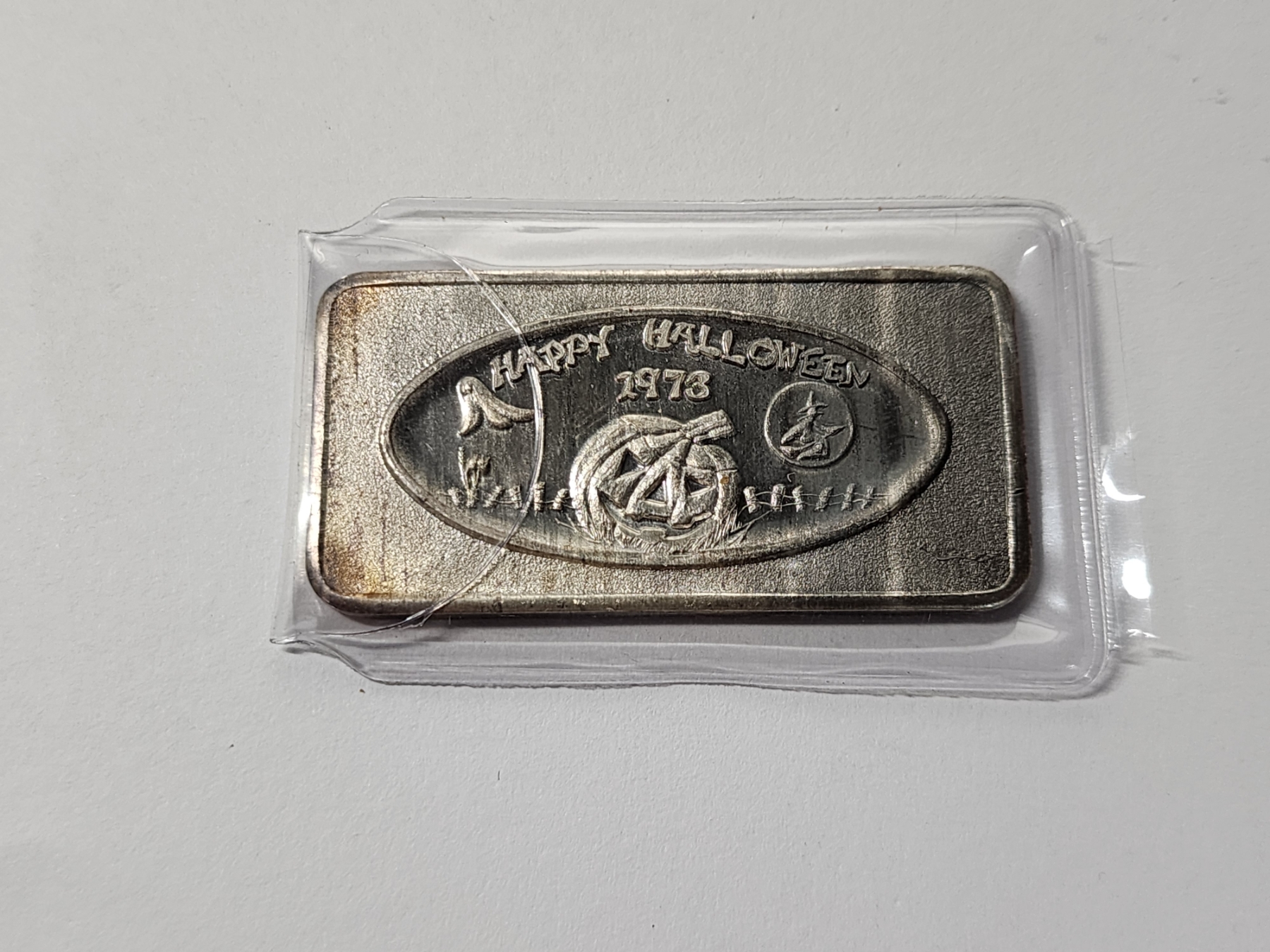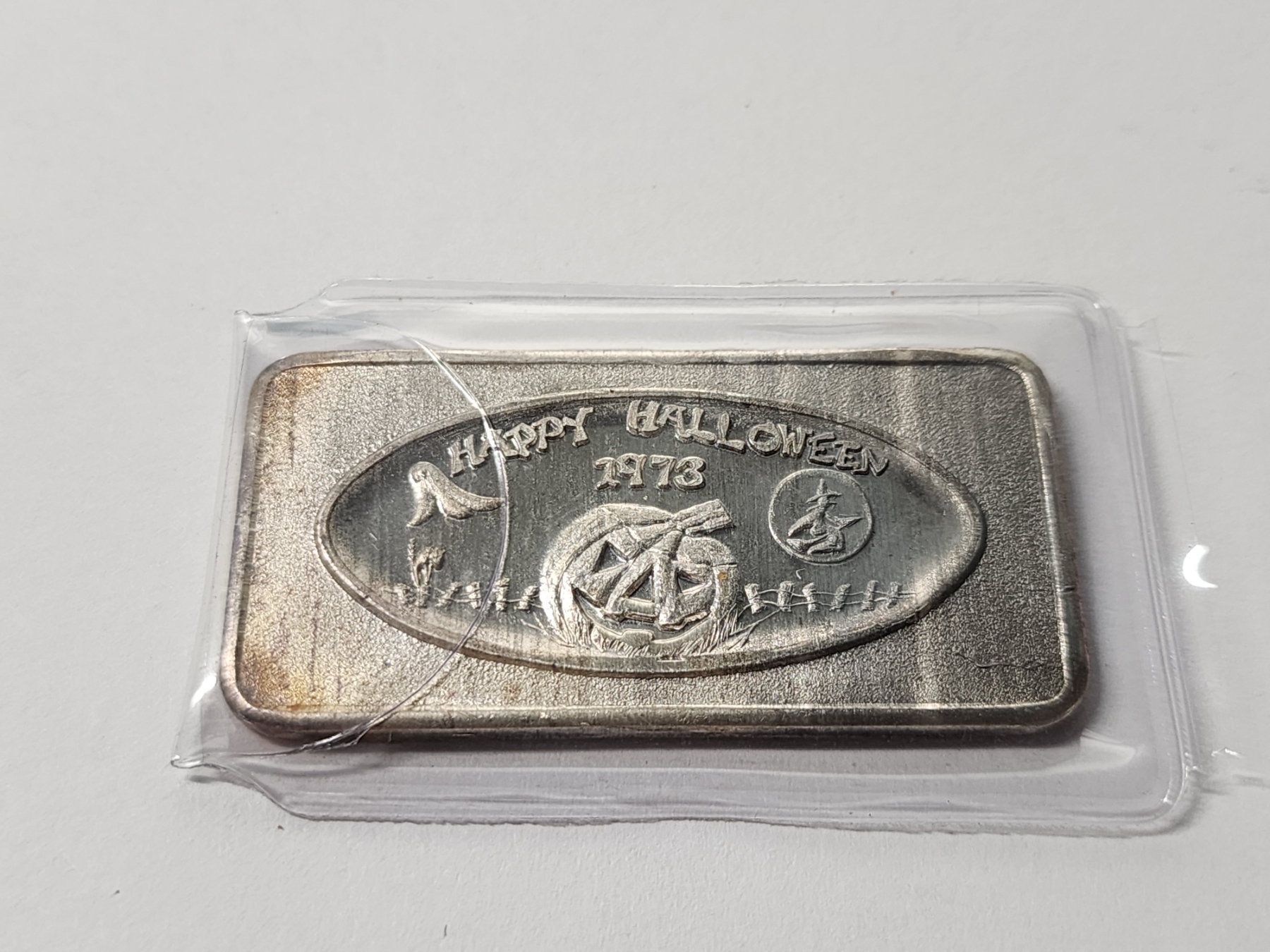 Rare "Happy Halloween 1973" One Ounce .999 Fine Silver Art Bar - Great Lakes Mint