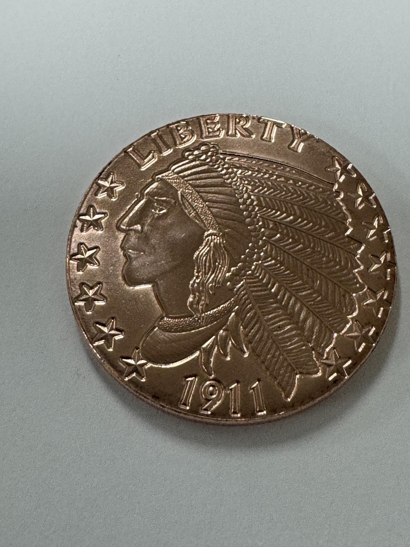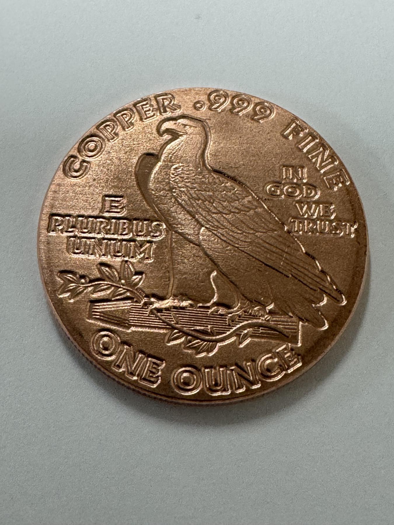 Rare Indian Eagle One Ounce .999 Fine Pure Copper Coin - Exceptional Coin