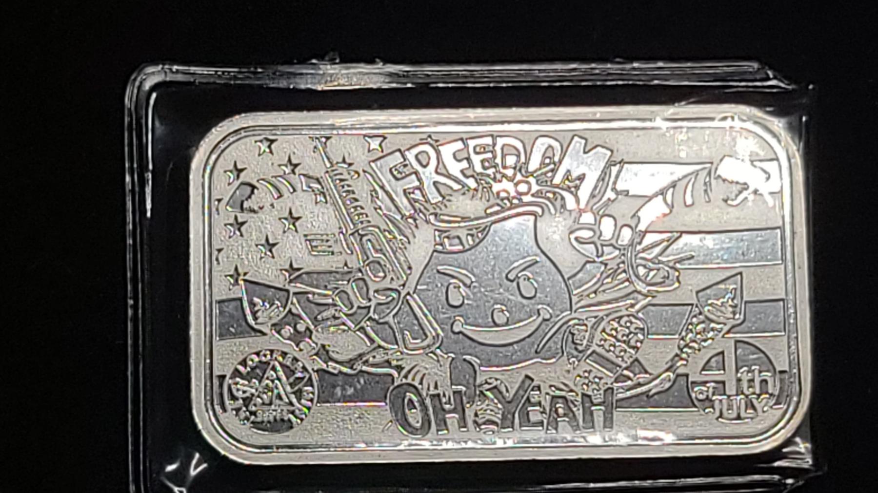 Rare Kool-Aid Man 4th Of July "Freedom, Oh Yeah" 1 Oz 999 Fine Silver Art Bar By The Locker Mint