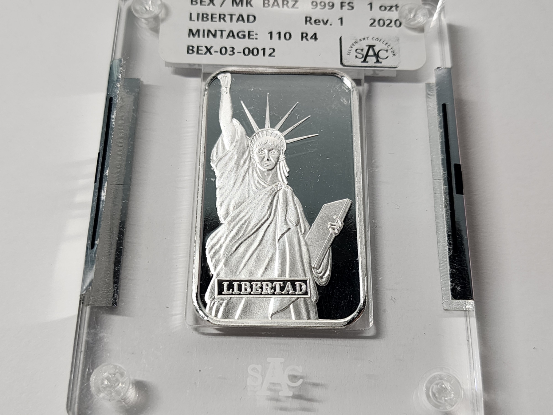 Rare! (Mintage: 110) The Locker Mint 1oz 999 Fine Silver Libertad Bar in Display Slab