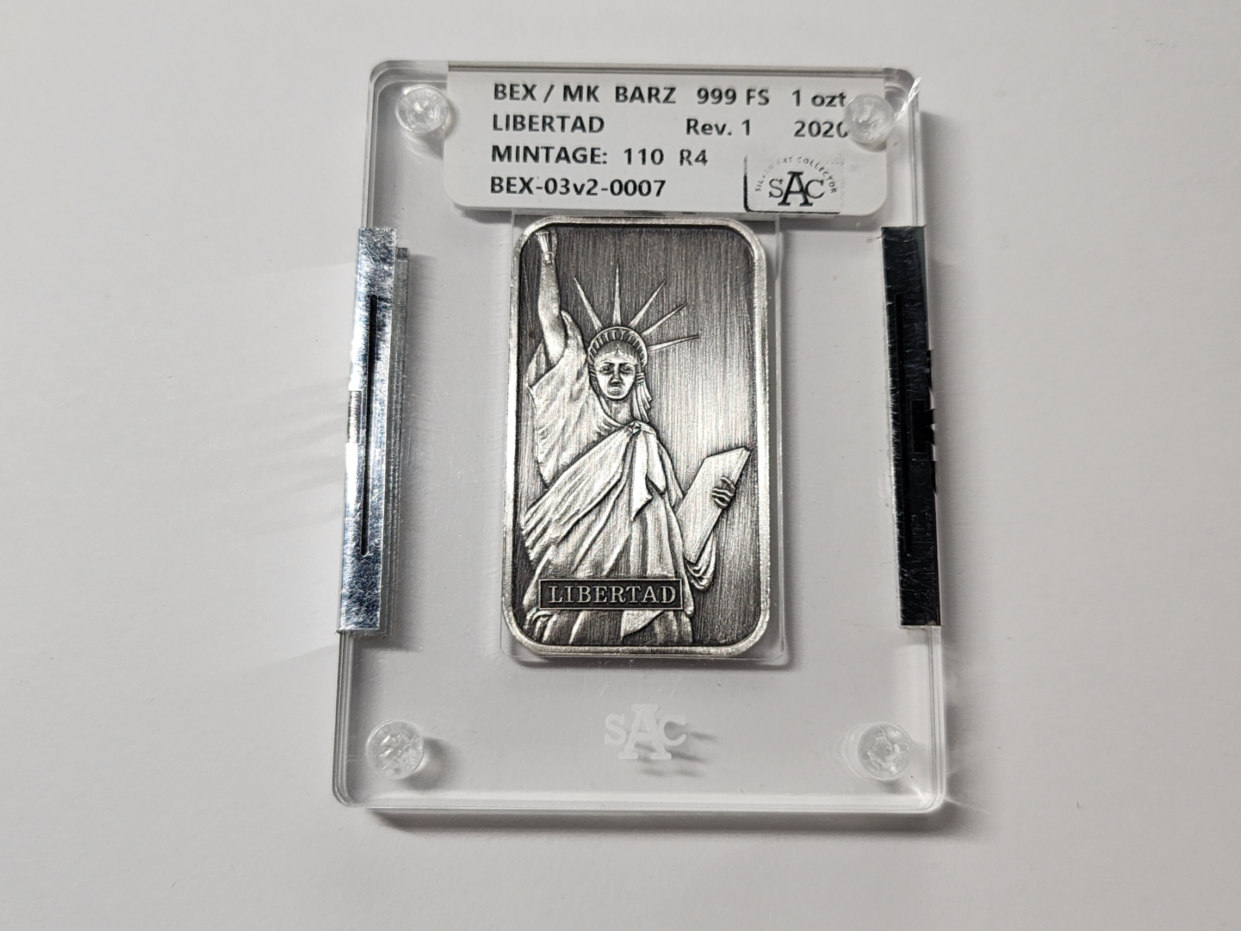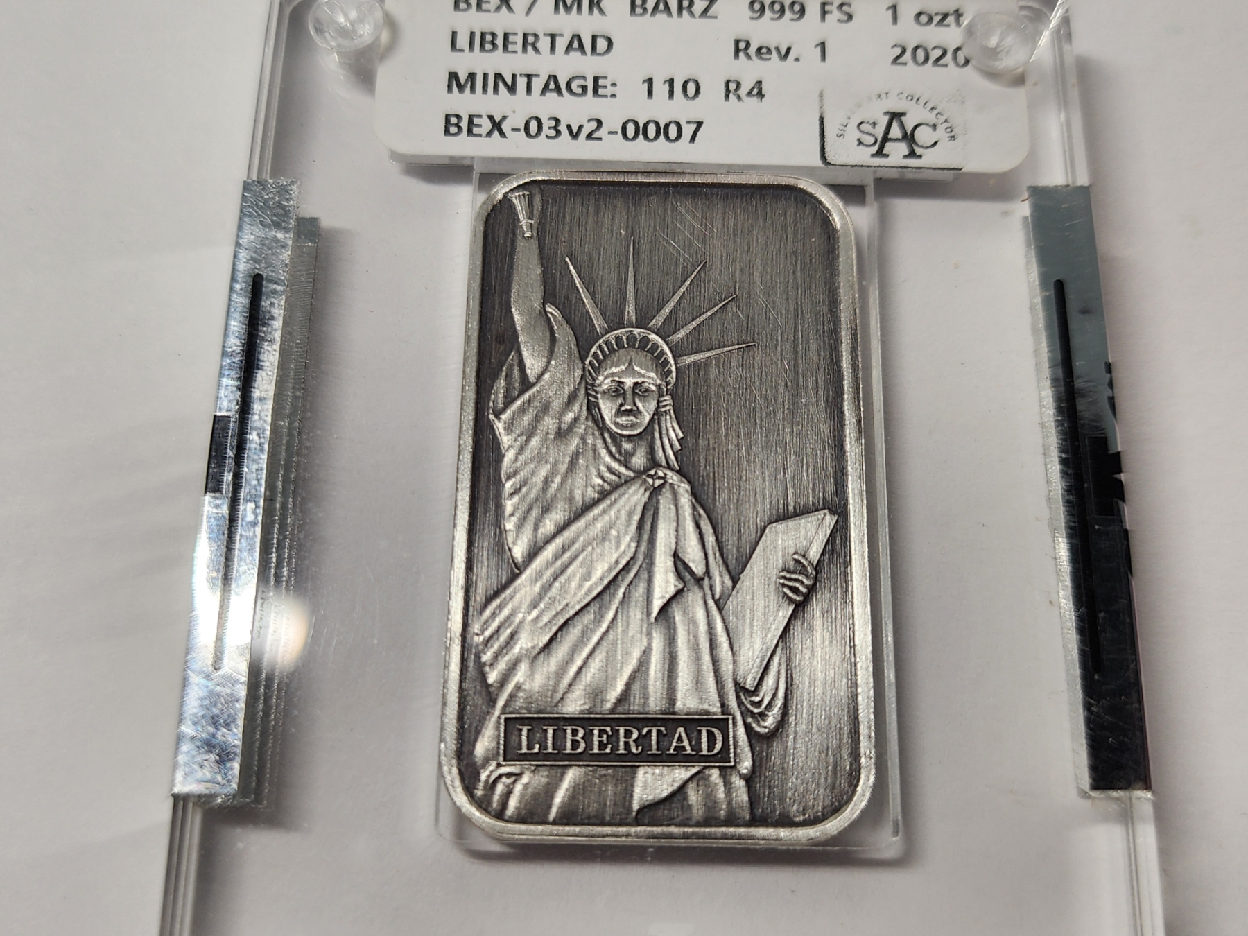 Rare! (Mintage: 110) The Locker Mint 1oz 999 Fine Silver Libertad Bar in Display Slab