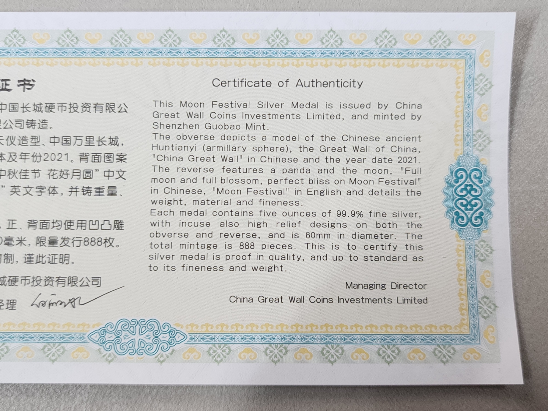 First Day of Issue(FDOI) - First Ever Super Incuse Moon Festival Panda ft. super incuse and high relief. Comes with display box.