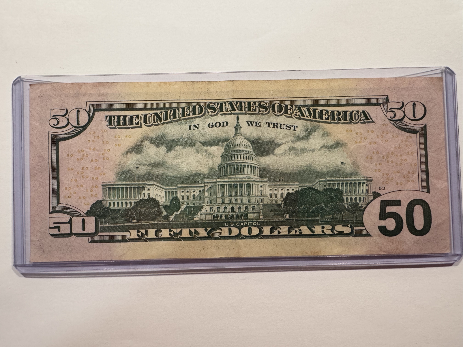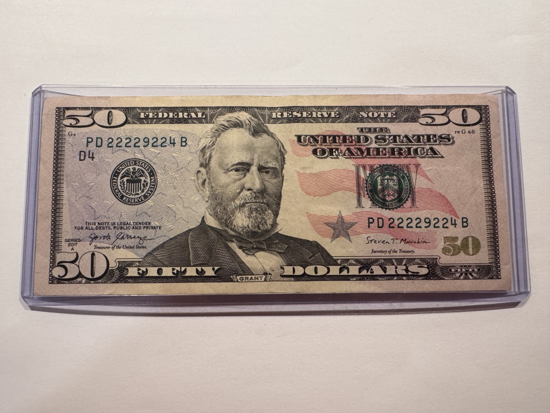 Rare United States Grant $50.00 Bill - 6 OF A KIND SERIAL NUMBER - Mint Condition In Holder